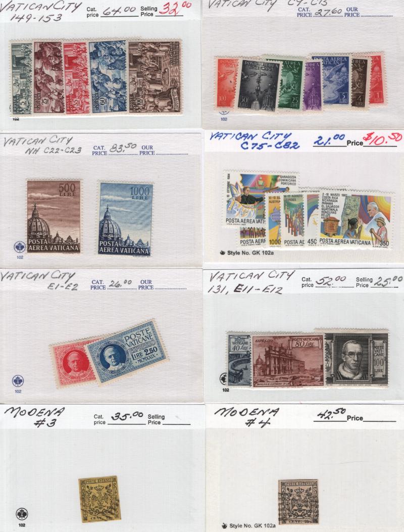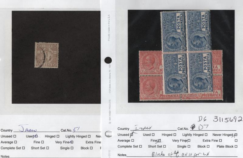 149-53, C9-15, C22-23, C75-82, E1-2, E11-12 & Used: Italian States-Modena 3, 4, PR2, Tuscany 4 pair, 5, 19, 20, Italian Offices-Estero 15, 16, Japan 2, 12, 15, 59, 85-86, Neth 45-49, Switz 181-85, Victoria 169-78 & much more, some light dup; owner's