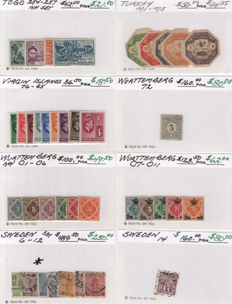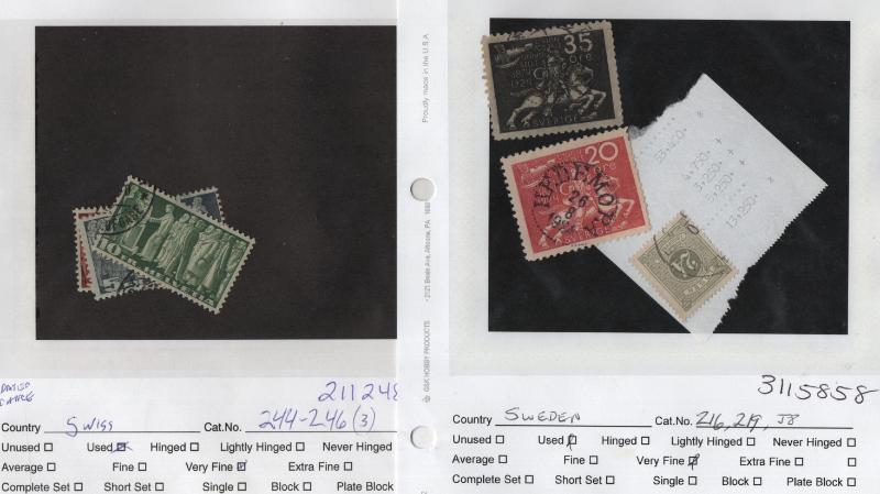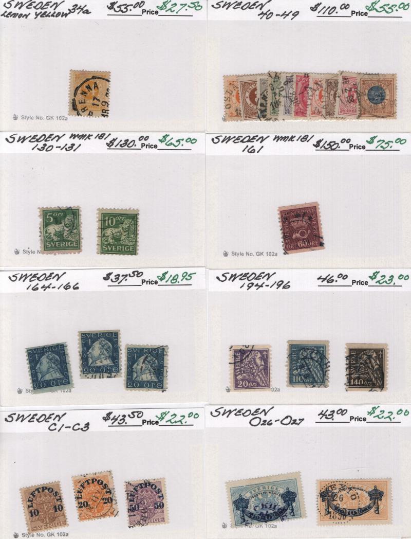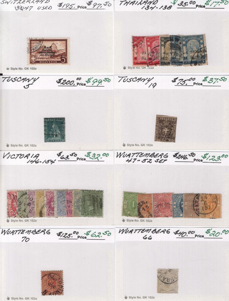 Used Sweden 6-12, 14, 34a, 40-49, 130-31, 161, 164-66, 194-96, C1-3, O26-27, Switz 42, 46, 47, 50, 185, J27a-28a (2), 3O31, 3O47, Thailand 134-38, Tuscany 5, 19, Victoria 146-54, Wurttemberg 47-52, 66, 70, much more; owner's CV $5,351 (NV); few flts