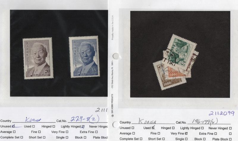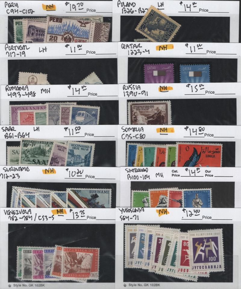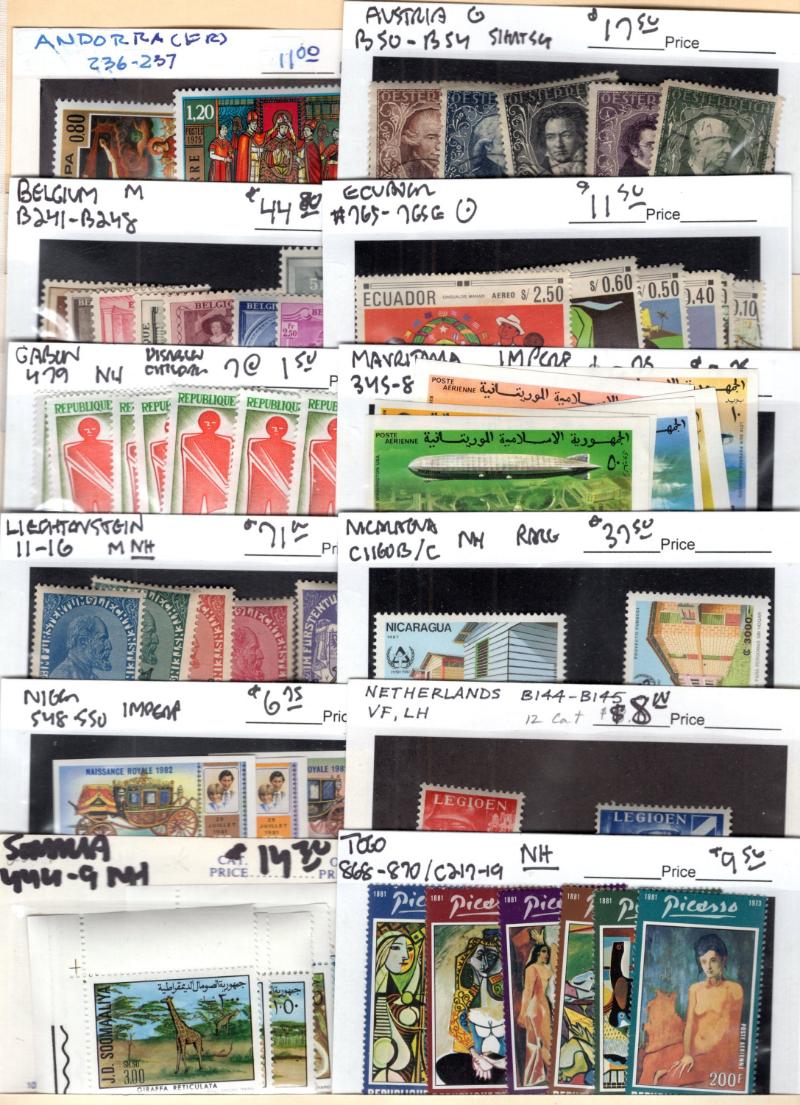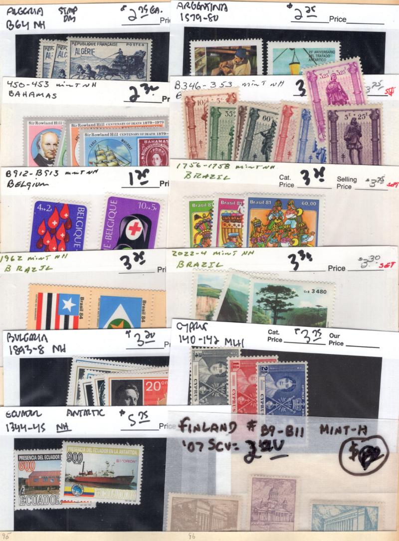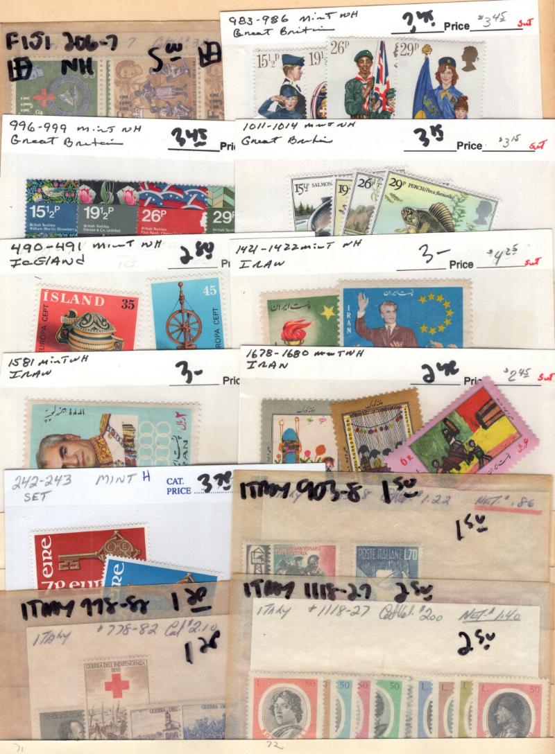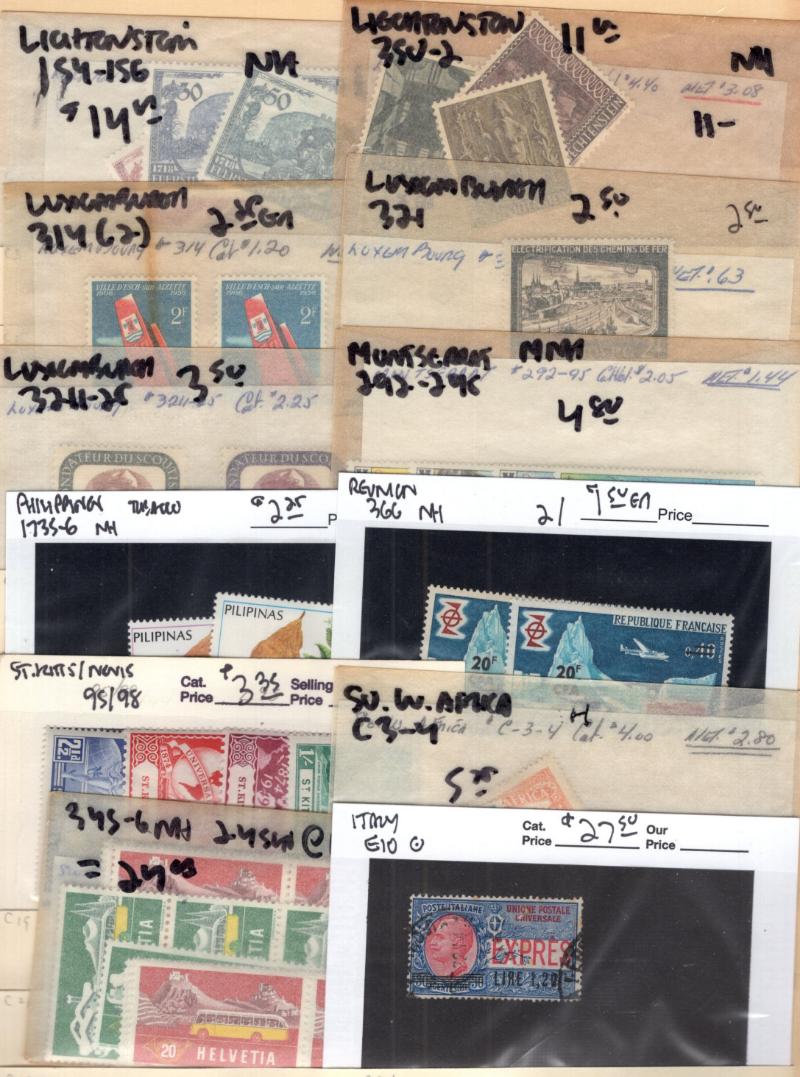 C24-26 H, Italy 397-99 Blks H, D5-7 Blks H, Korea 79, 227-28 H, Lux 329-31 H & Used: Argentina 82a, Canada 25, 29, Germany 804, 804a-e, B313, 8N37, 9N6, 9N10, 9N17, 9N75-79, 9N84-93, O14 Blk/12, Japan 51, Korea 196-99, Norway B2 & many more better,