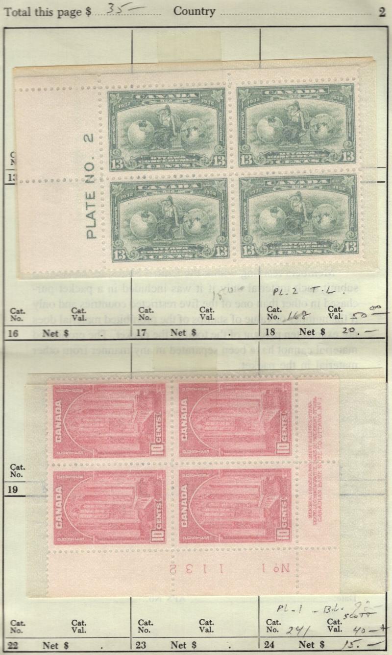 Accum (100s) */O in dealer book, pgs w/ N/C on them are not counted it total value, they are space fillers, owner IDed & CV $5,312.45 (NV), incl Unused: Bulgaria #33 NH, Canada 89, 90, 110, 113, 182 pair, C4, F2, PRC 1951-54, Grenada 131-42 H, Guinea