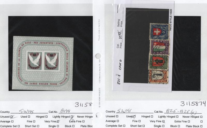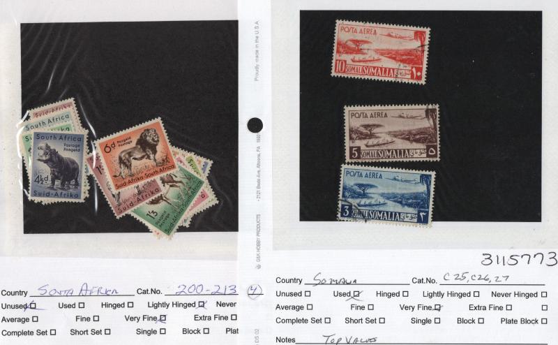 El Salvador 156, Somalia C25, C26, C27 used, S Africa 200-13 H, Sweden 216, 219, J8 used, Switz used 244-46, B1, B29//205 (12) diff sets, B9, B10-11, B15-17, B18-20, B25-28, B144 & B178 both unused, Trinidad & Tobago 50-61 used & other better items,