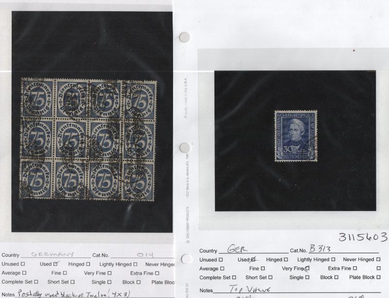 Dealer Stock (1000s) */O mainly early 20th Cent to abt 1940 in abt (1600) 102 cards in (2) red boxes incl Unused: Andorra-Spain #37-48, Austria B146-51, B245-51, Belgium B107-13, Denmark 85, 88-96, Eritrea C1-6, Fiume E14-17, Germany 10pf