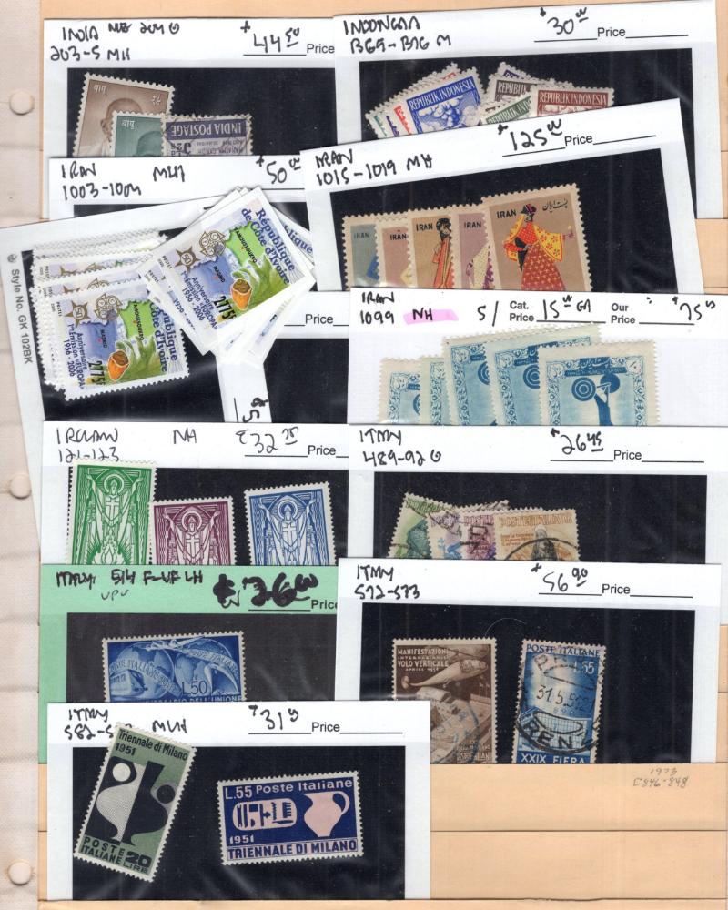 284-86, India 219, 233-34, 244-45, Indonesia B69-76, Iran 1003-04, 1015-19, 1099 (5), Ireland 119, 121-23, Italy 514, 582-83, Ivory Coast 1156-65 perf & imperf; Used: Hong Kong 168-73, Italy 489-92, 572-73 & much more; owner's CV $10,000 (NV); few