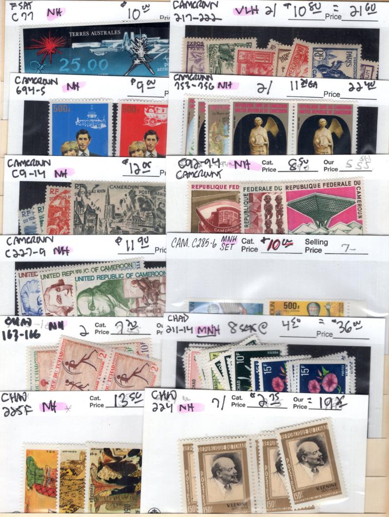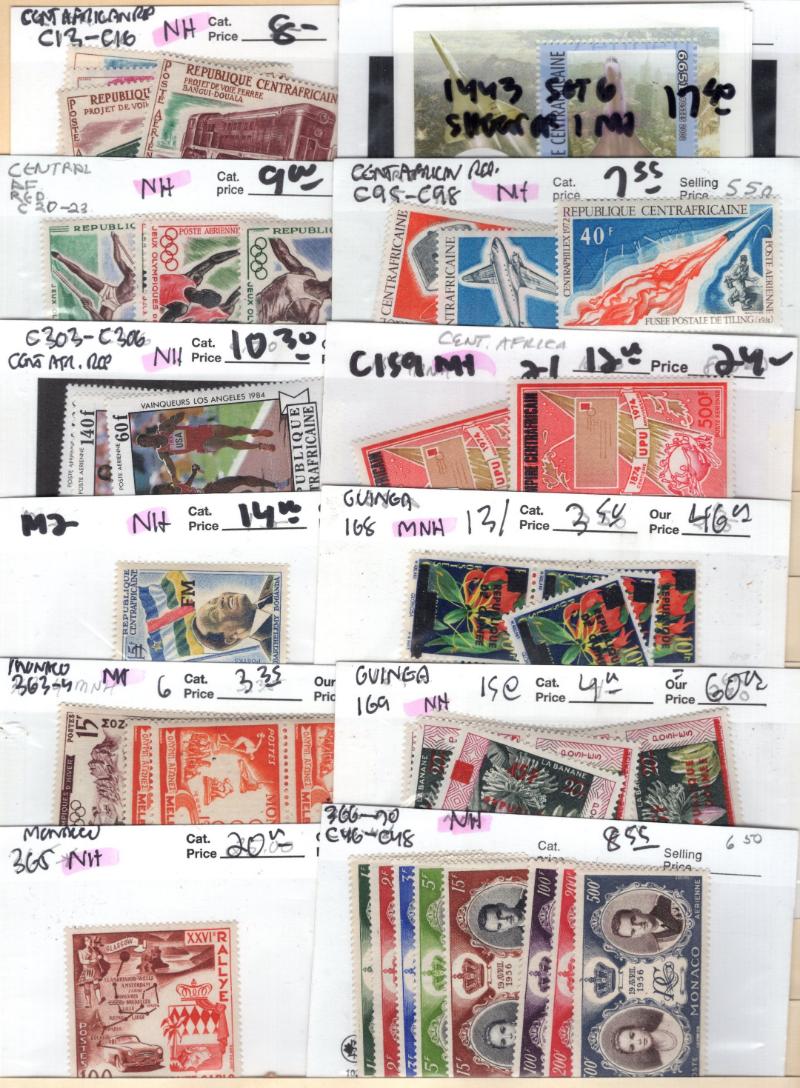 694-99, C9-14, C227-29, C285-86, Chad 163-66, 225f, 383-86, C49-50 (4), C84 (4), J23-34, Congo Peoples Republic C86-88, C155 (4), C188-89 (3), C194 (3), C329-32, Central African Republic 497-500 imperf, 987-1000, 1443 (6), C303-06, M2, Monaco 365,
