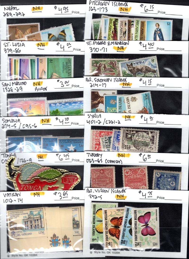 Mali 214-15, Martinique B8-10, Monaco 1616-19, Nepal 289-92, Pitcairn Is 163-73, St Lucia 379-86, SPM 370-71, Somalia 274-75, C95-96, Syria 401-02, C221-22, Tonga C7-10, Virgin Is 342-45 & much more; also incl much British & French Colonies; some