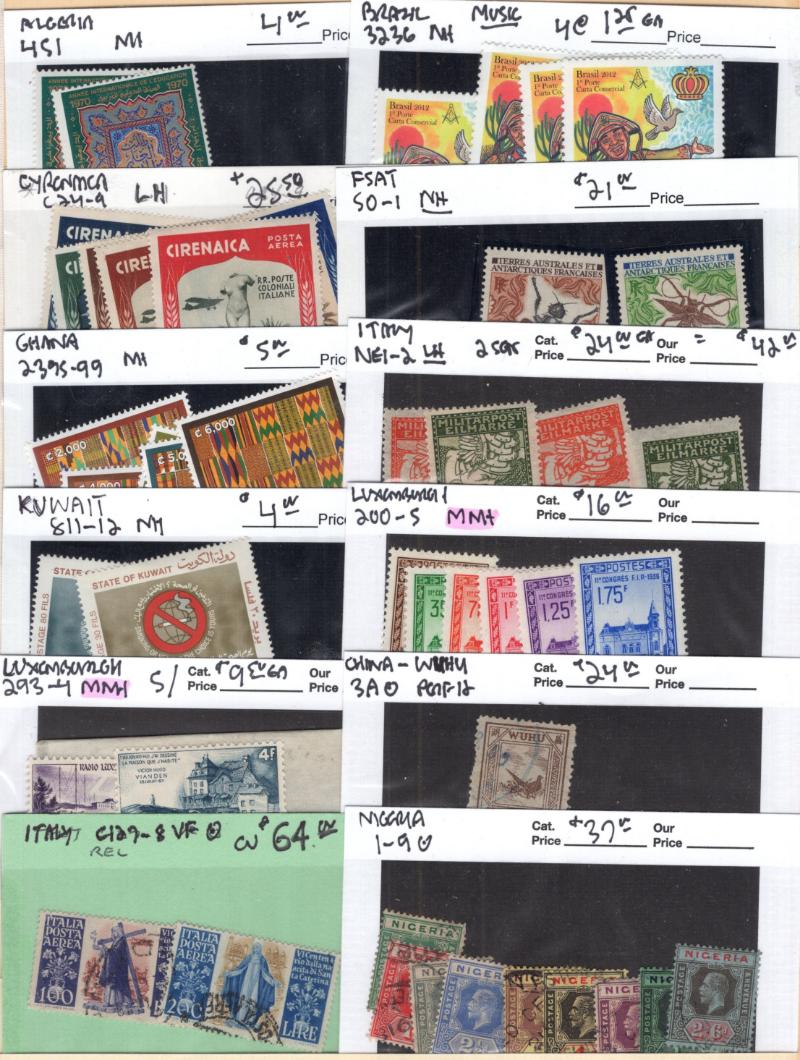 2395-99, Italy NE1-2 (2), Kuwait 811-12, Lux 200-05, 293-94 & Used: China-Wuhu 3a, Italy C127-28, Nigeria 1-9 & much more; some light dup; owner's CV $15,000 (NV); few flts but gen F-VF H/NH (Image) (imageb)