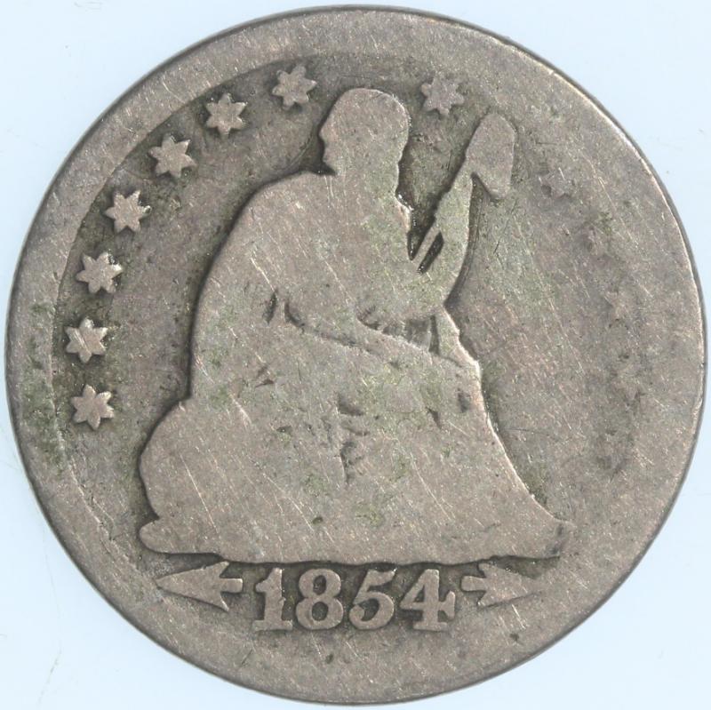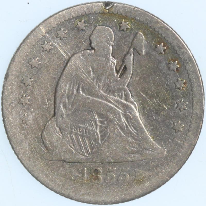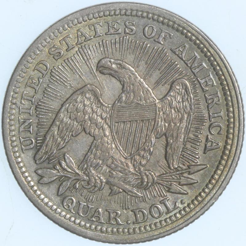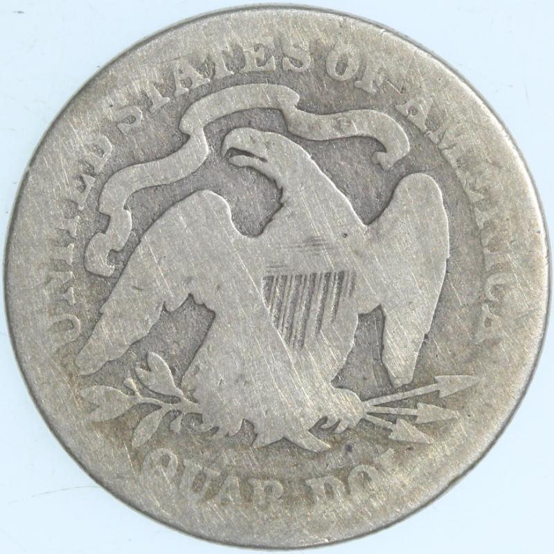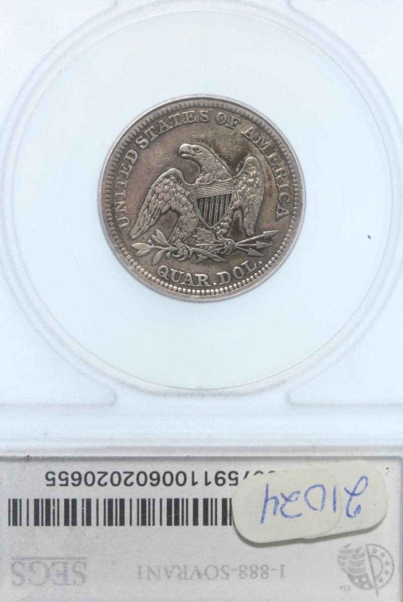 Arrows "53 over 53" B1-A SEGS VF25 Cleaned. From the Larry Briggs Private Liberty Seated Collection. 1853 No Arrows Quarters represent a very scarce variety and the price guides prove it. These coins were struck to the tune of 44,200 before the