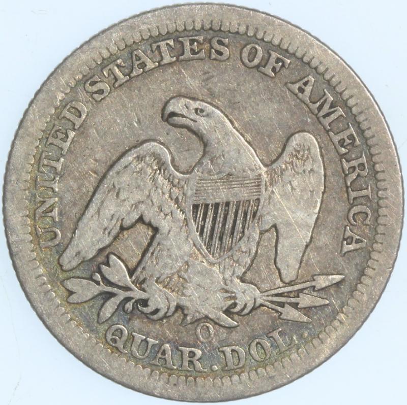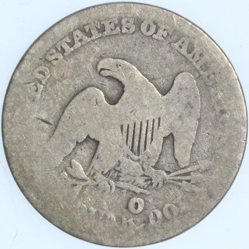 sent to New Orleans w/o a mintmark (at the time, all dies were made and mintmarks punched at Philadelphia). An attempt to add the mintmark was then done by hand in New Orleans. A scarce variety and virtually all known examples are circulated. (Image) (imageb)