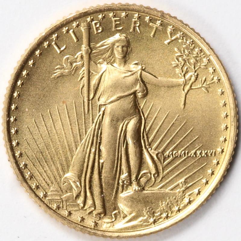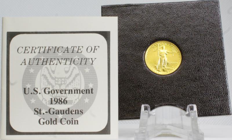 268 image 1986 Tenth-Ounce Gem BU in a small cardboard presentation box w/ COA. (Image) (imageb) (imagec) (All Images)