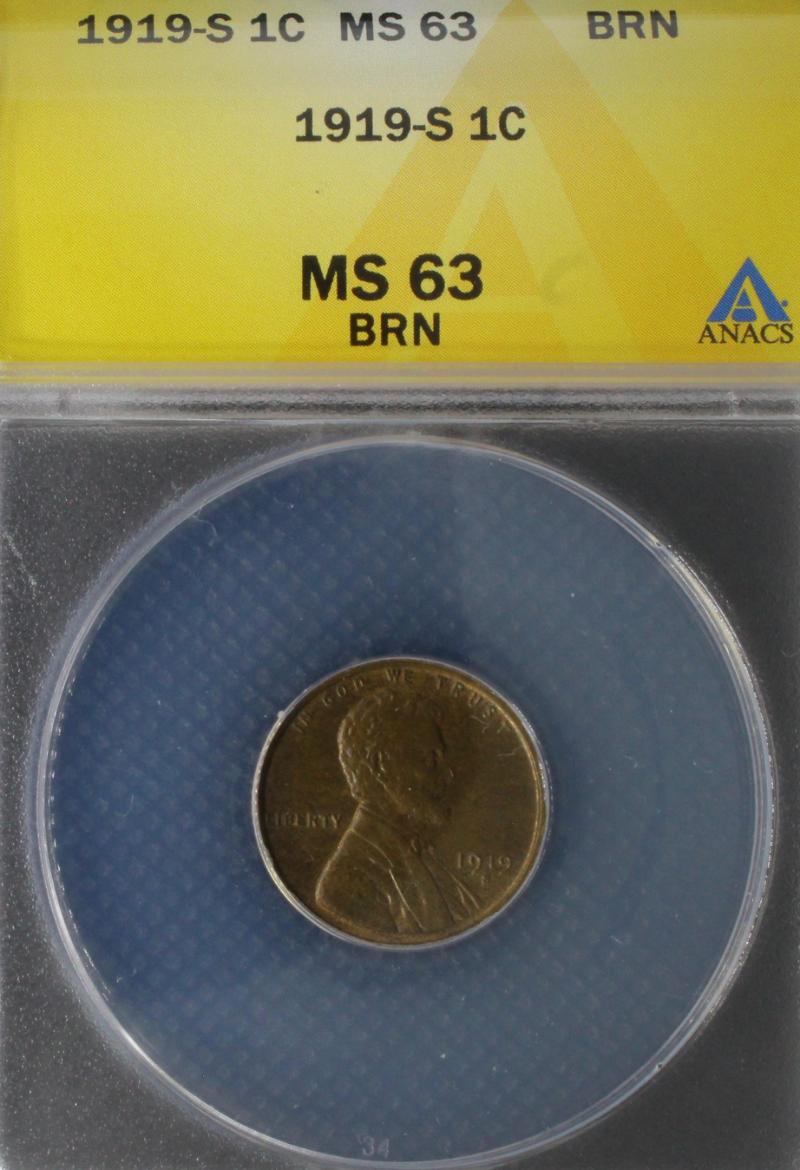 48 image 1919-S ANACS MS63 Brown. A beautiful example of this issue w/ excellent detail. (Image) (imageb) (All Images)