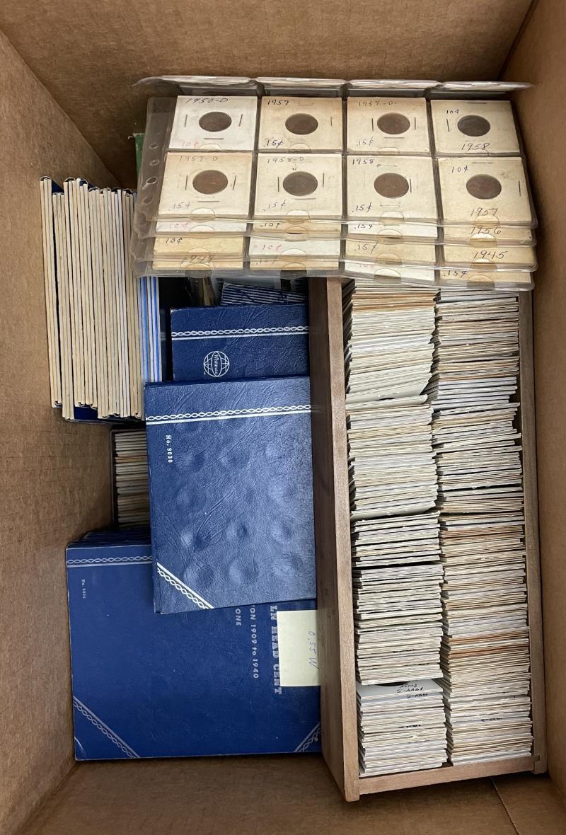 67 image (2,500+) Wheat Cent Extravaganza! Large collection of loose cents at least 500 pre-1940, plus over (40) albums/folders containing additional coins w/ (300+) pre-1940. Bonus: additional Memorial cents, many unc. Needs inspection! (Image)