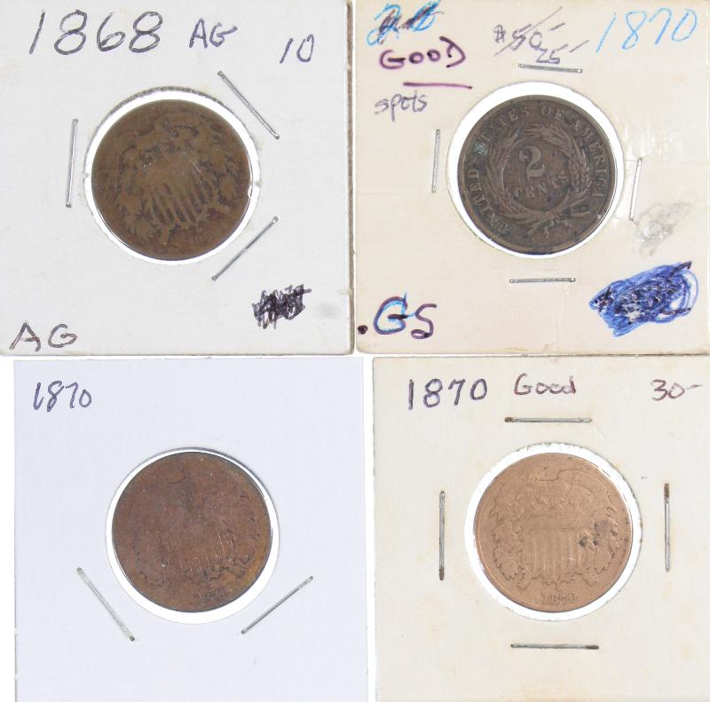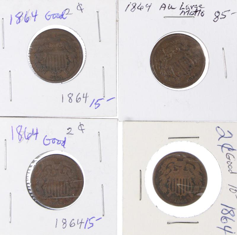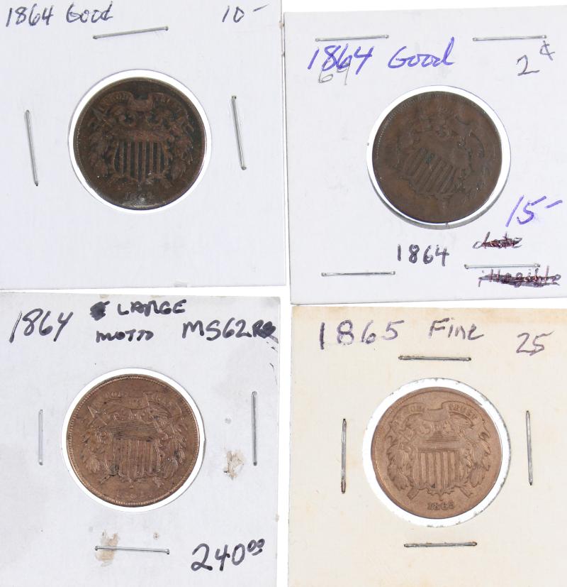 70 image (18) 1864 Large Motto // 1871. Most have problems such as dings, corrosion, old cleaning. Few original (1865 Fancy 5 XF). Worth a look. (Image) (imageb) (imagec) (imaged) (imagee) (imagef) (imageg) (imageh) (imagei) (imagej) (All Images)
