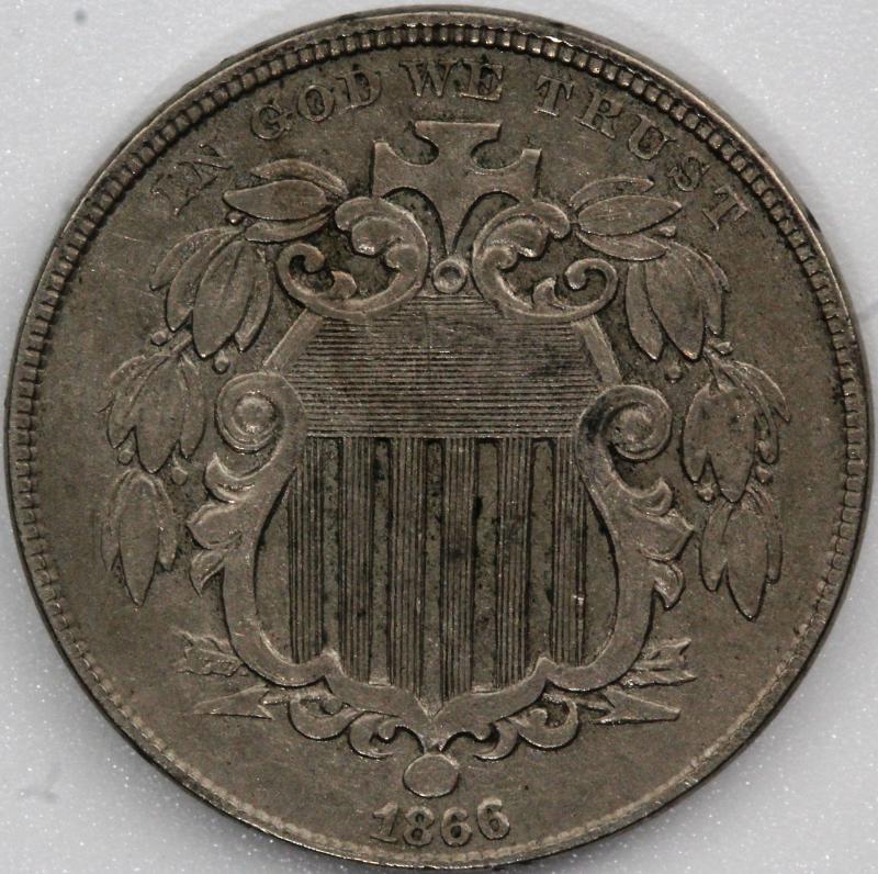 72 image 1866 Rays XF ample central detail but slightly weak around the periphery exemplifying why the rays were removed the following year. (Image) (imageb) (imagec) (All Images)