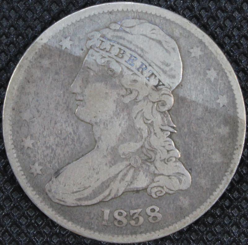 163 image 1838 VG-F. Obverse somewhat discolored from storage. Still pleasing. (Image) (imageb) (All Images)