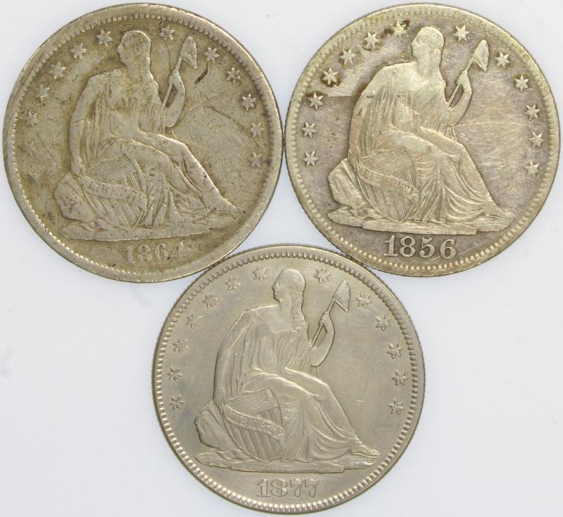 164 image (3) including 1856-O, 1864-S and 1877. VF-XF+ details, all with issues; cleaned, scratches, gouges, etc. (Image) (imageb) (imagec) (imaged) (imagee) (imagef) (imageg) (All Images)