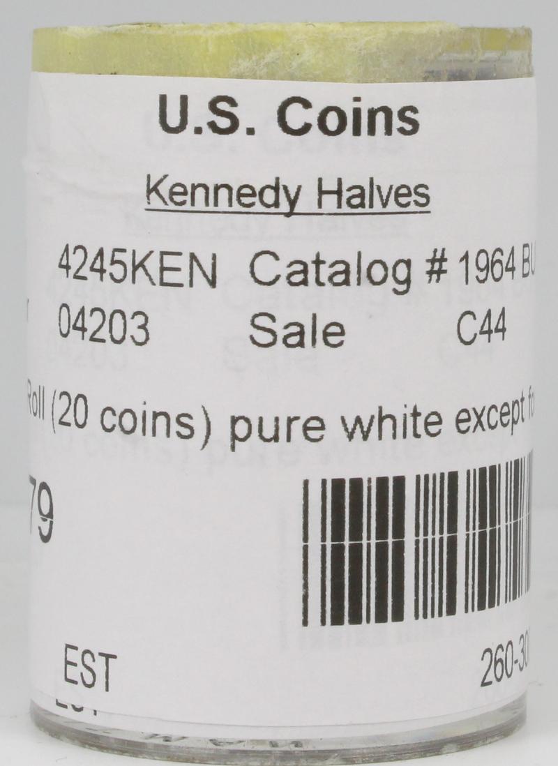 180 image 1964 BU Roll (20 coins) pure white except for the end coins. (Image)