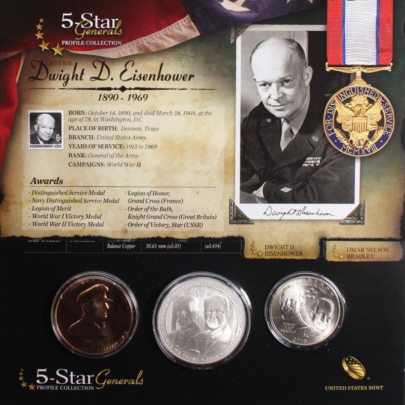 2013 5-Star General Profile Collection "3 Coin" Set incl. silver dollar, clad half-dollar & copper medal. Both in OGP. ASW =1.5oz. (Image) (imageb)