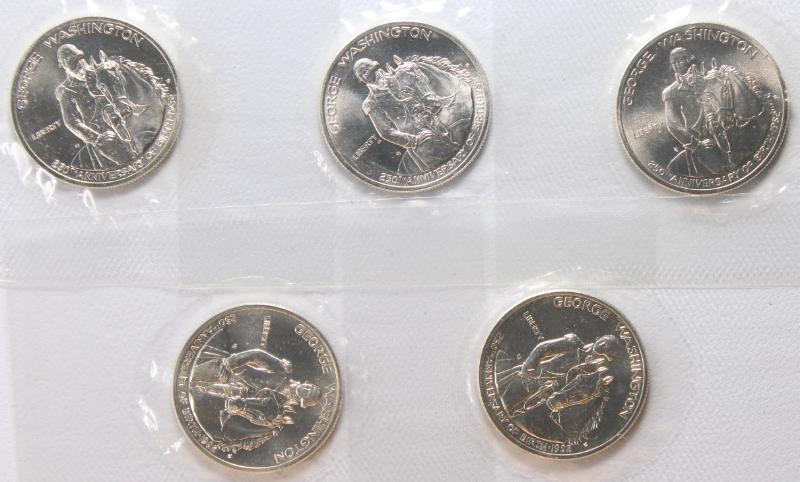 Washington 250th Anniversary (5) 1982-D Unc Silver. ASW=1.80ozt (Image) (imageb)