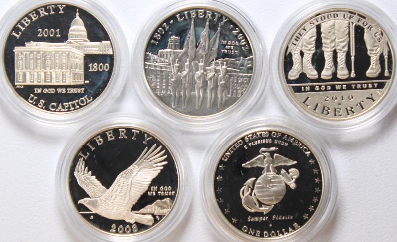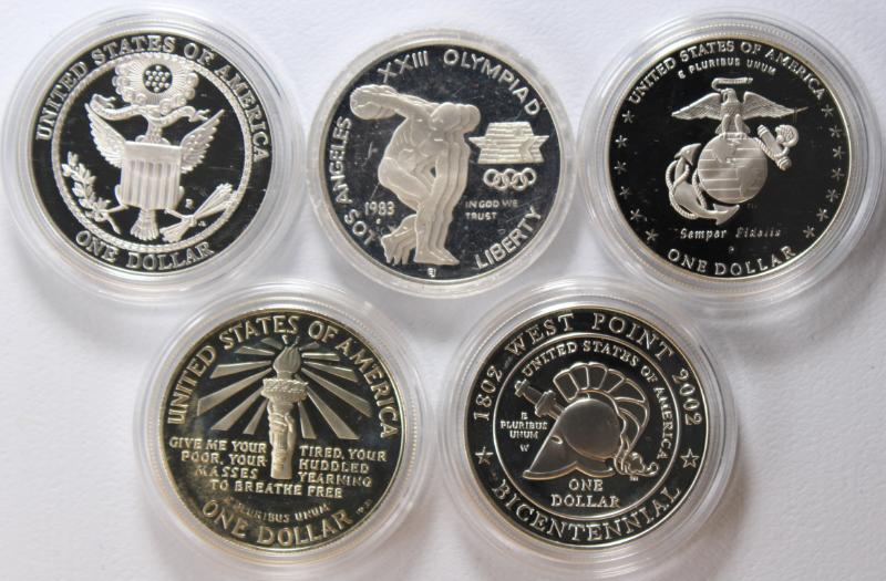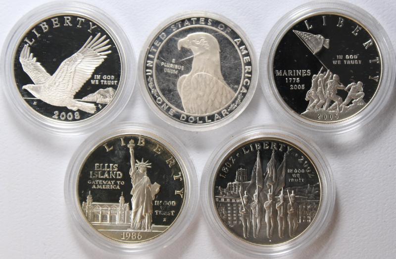 Proofs incl 1983 Olympics, 1986 Liberty, 2002 West Point, 2005 Marines & 2008 Bald Eagle. (Image)