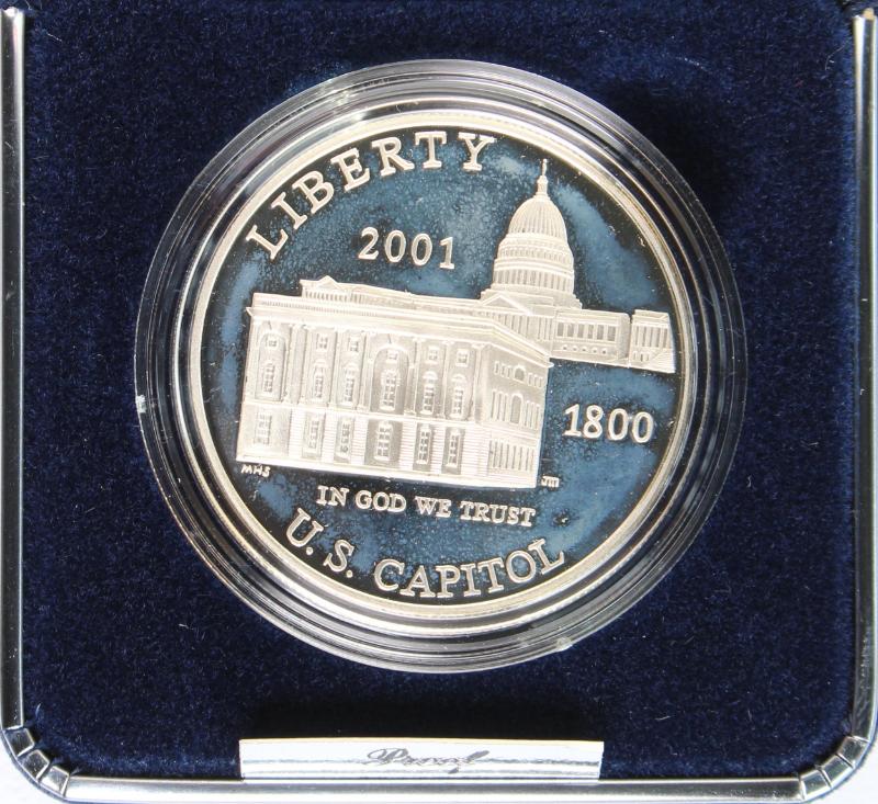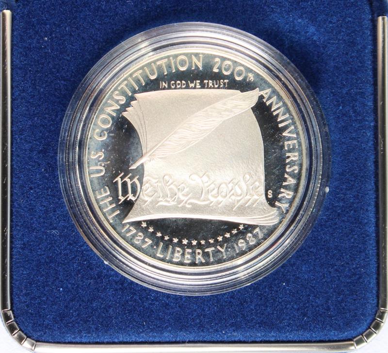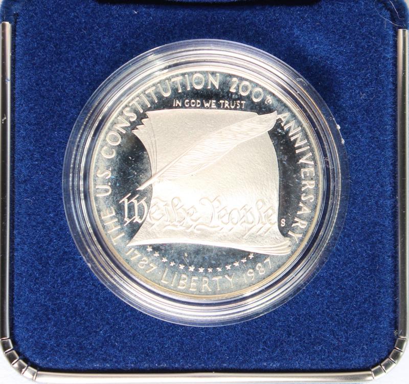 Commemorative Proof Silver Dollars incl (2) 1987 US Constitution & 2001 US Capitol Visitor Center. Bonus: 2001 US Capitol Visitor Center Clad Half-dollar. All in OGP w/ papers. ASW=2.28oz. (Image) (imageb)