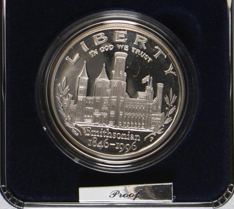Commemorative Proof Silver Dollars incl 1996 Smithsonian, 1997 Botanical Gardens & 2000 Library of Congress. All in OGP w/ papers. ASW=2.28oz. (Image)