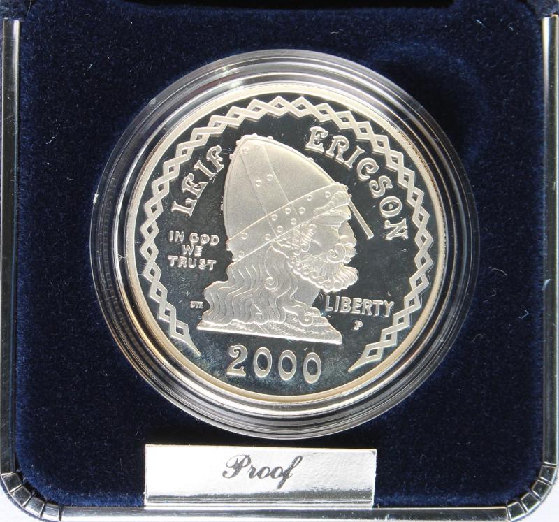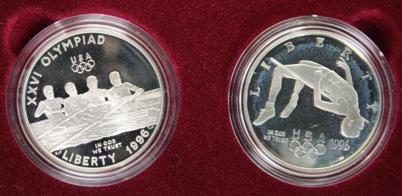 Commemorative Proof Silver Dollars incl 1996 Atlanta Olympic Games (2-coin set of Rowing and High Jump), 1999 Yellowstone & 2000 Leif Ericson. All in OGP w/ papers. ASW=3.04oz.