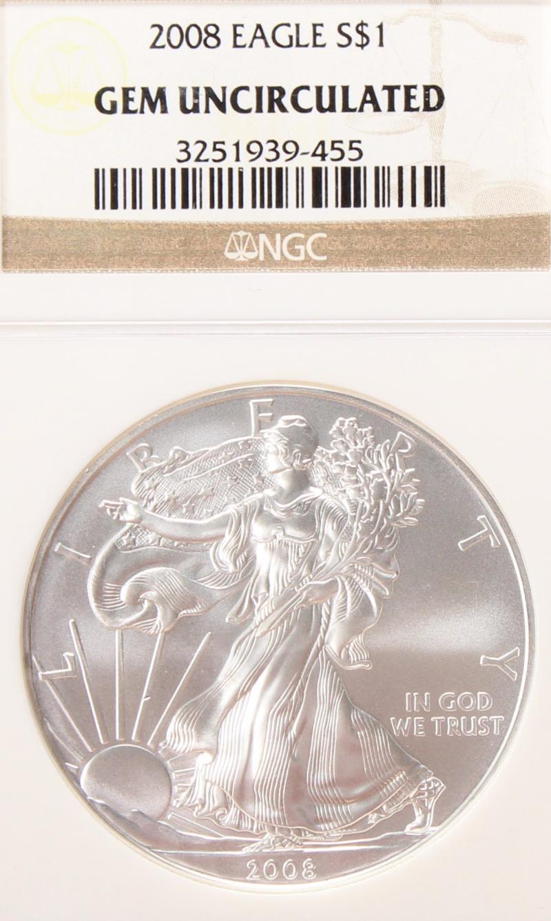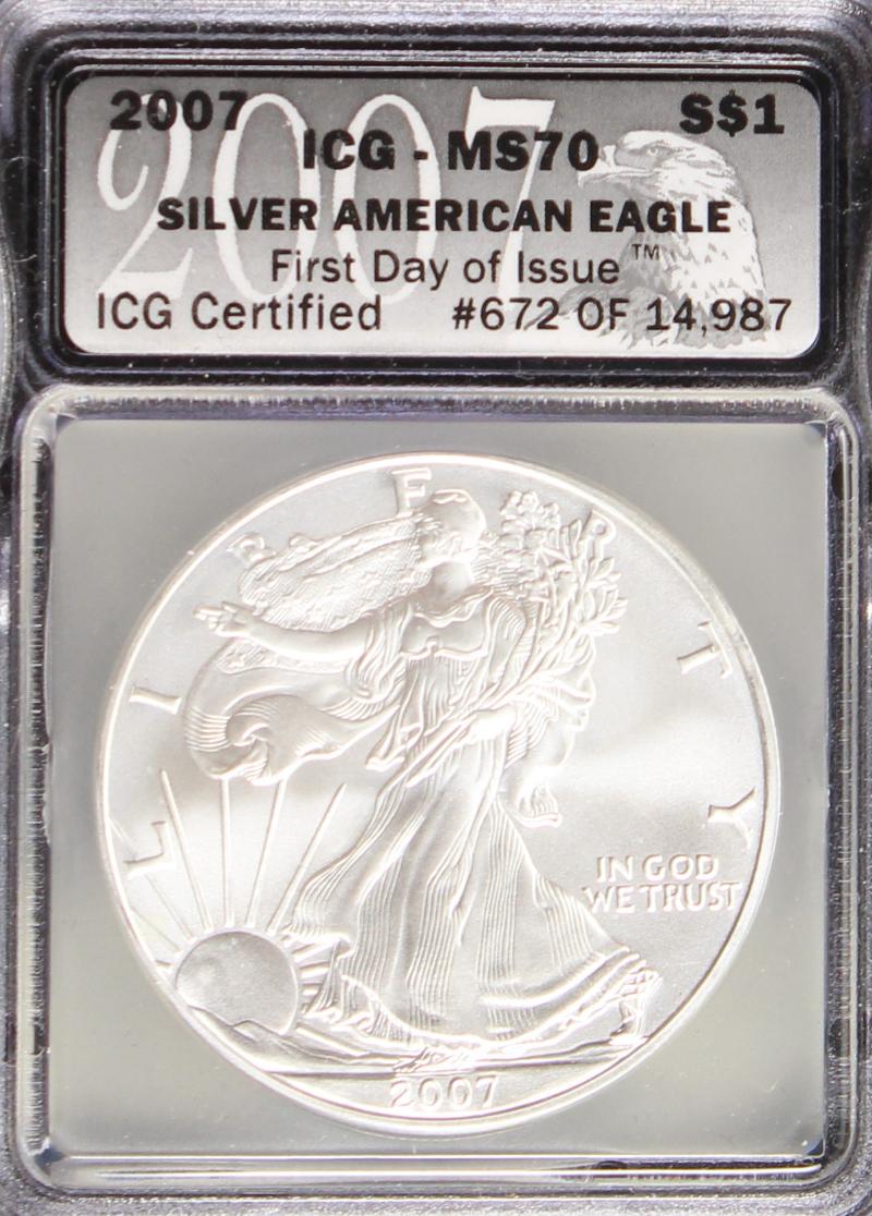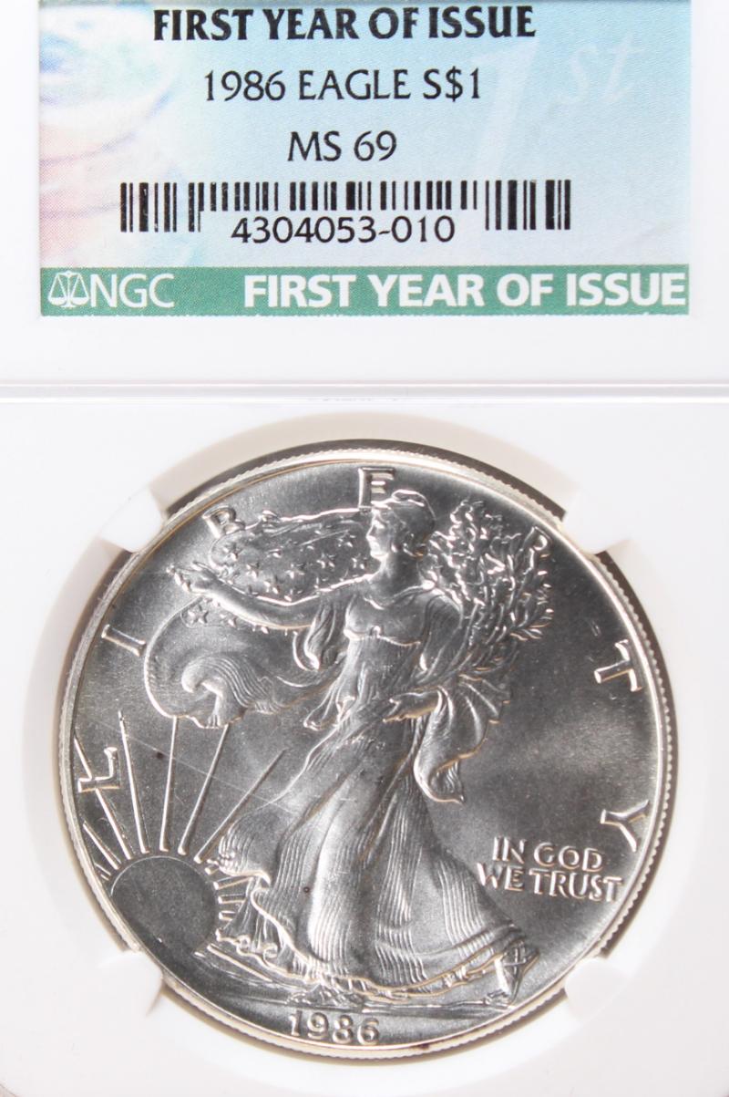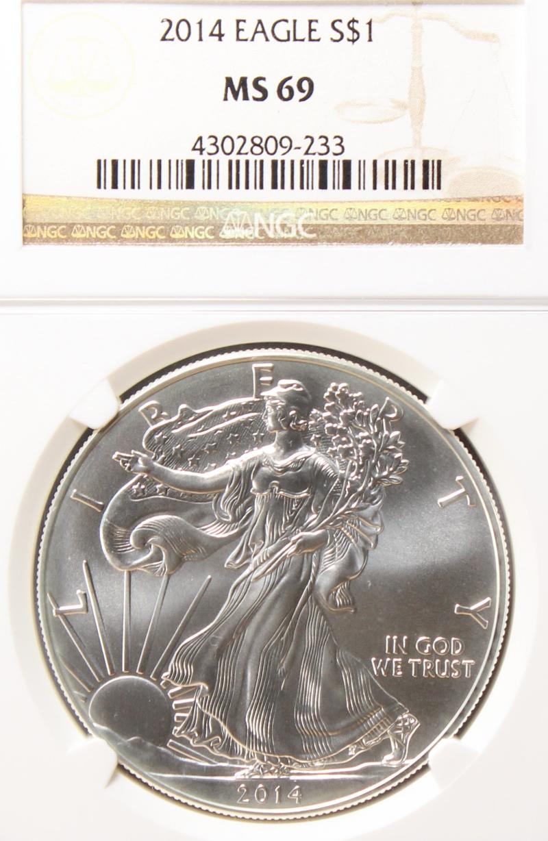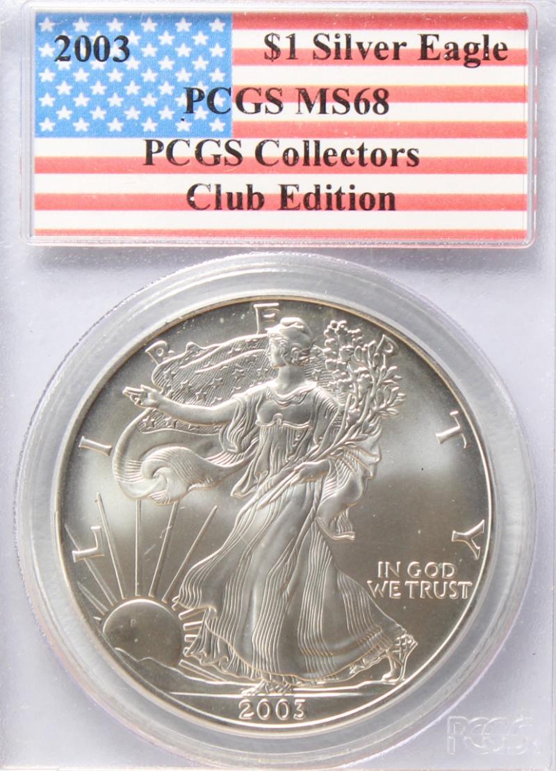 ASE incl 2003 PCGS MS68 & 2014 NGC MS69. ASW=2.0oz. (Image) (imageb)