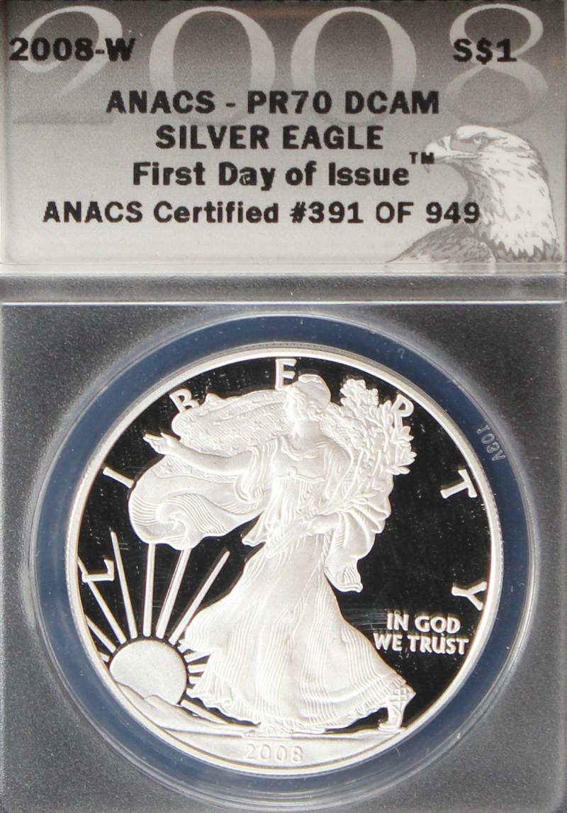 ASE ANACS PR70DCAM FDOI housed in cherry wood presentation case. (Image)