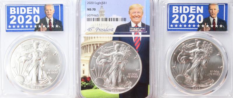 2020 MS70 incl PCGS Biden Label (2) & NGC Trump Label. (Image) (imageb)