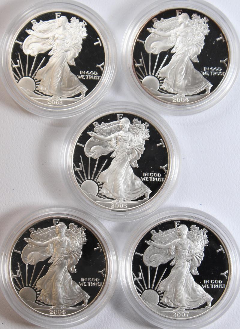 Proof ASE incl 2003, 2004 (2), 2005, 2010 & 2011. (Image) (imageb)