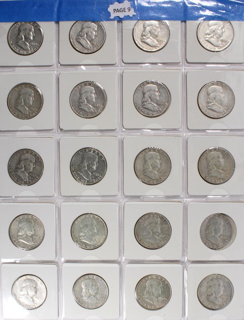 face incl Franklin Halves, Washington Quarters and Mercury Dimes housed in 2x2s. Better than average circulated condition. (Image) (imageb)