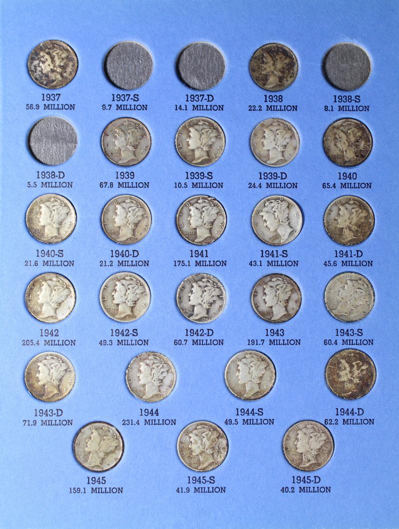 face Dimes Merc & Roosevelt avg circ in 2x2s. (Image)