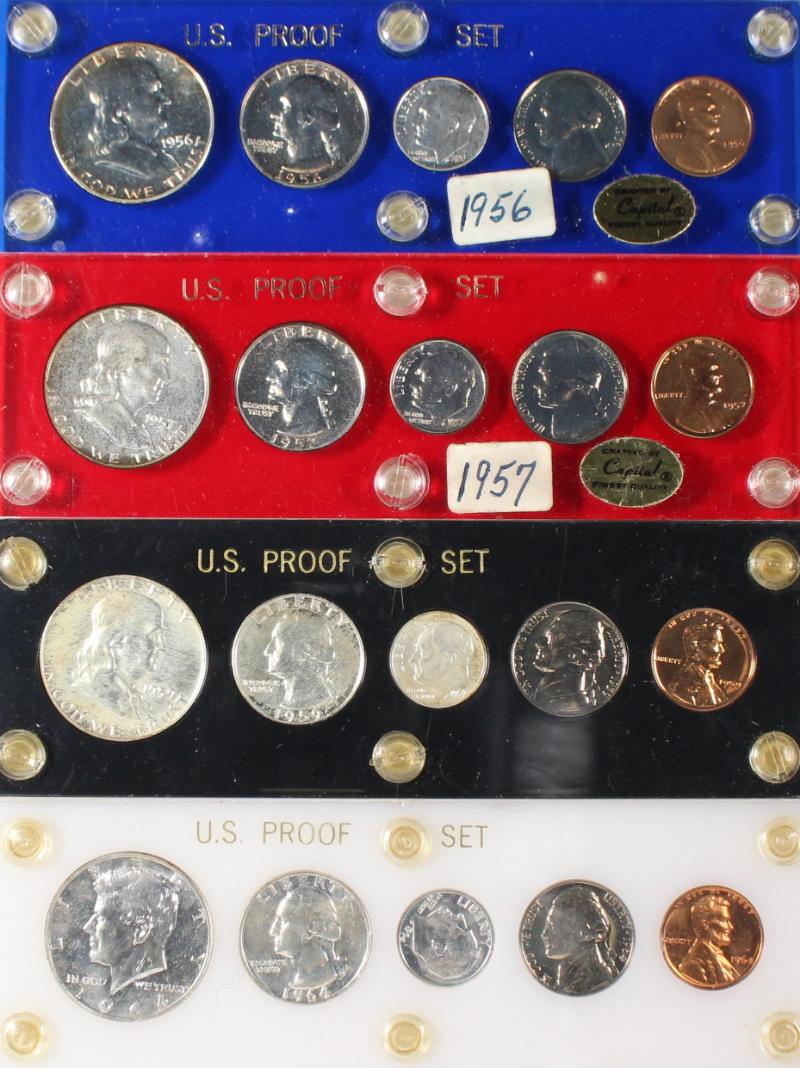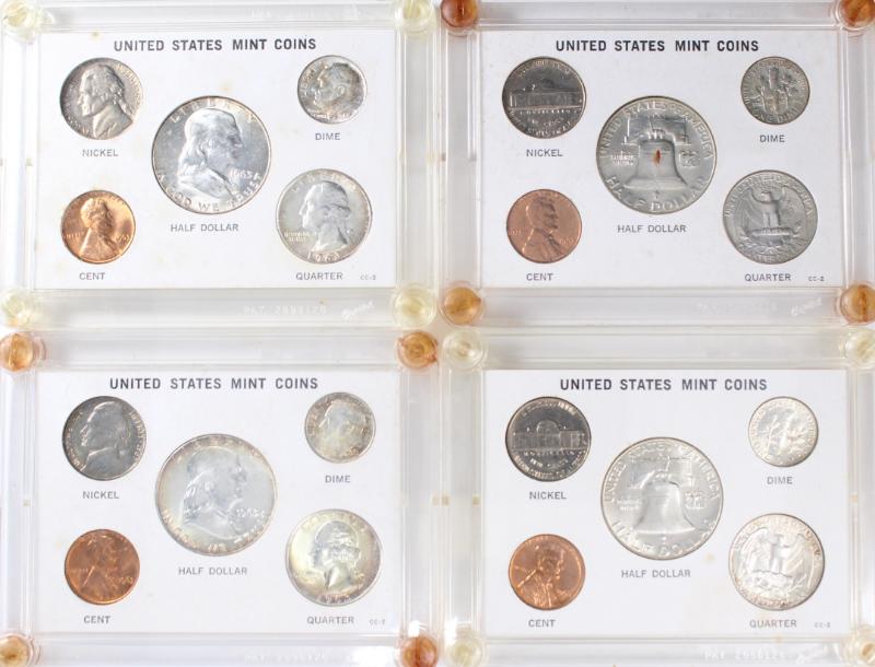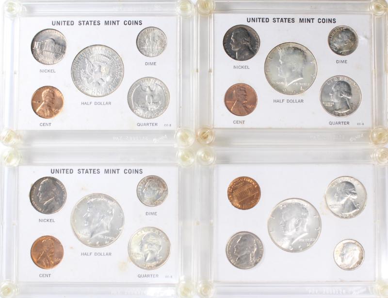 Unc Year Sets 1963 (4) and 1964 (4) packaged in Capital holders. ASW approx 4.92 ozt. (Image)