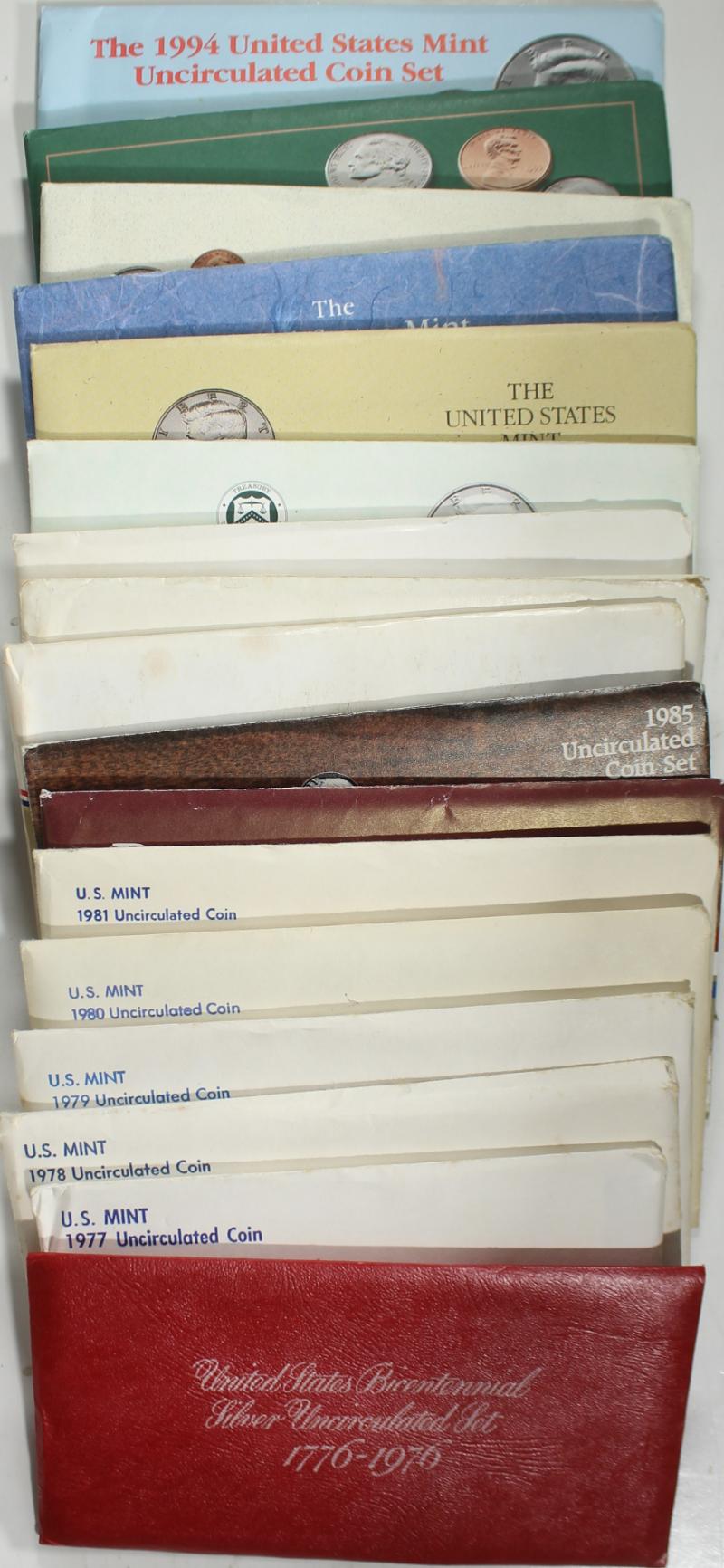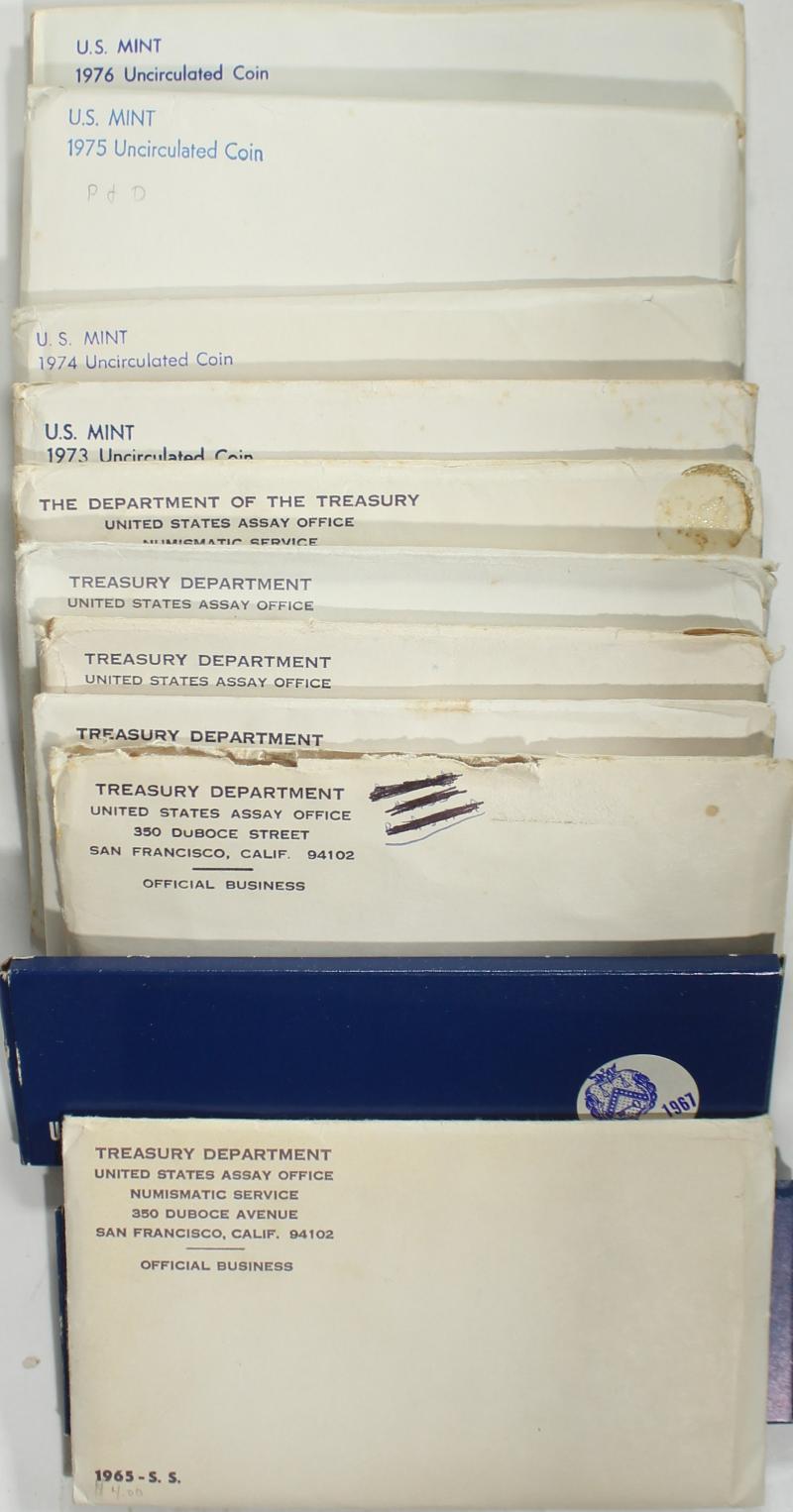 Collection Mint Sets incl 1965 SMS, 1974 (2), 1977 (3), 1988 (2), 1989 (2), 1991 &1992 all in OGP. Also incl 1983 "Numismatic News" produced mint set and (7) DIY mint sets in plastic holders. ASW approx 2.28 ozt. (Image)