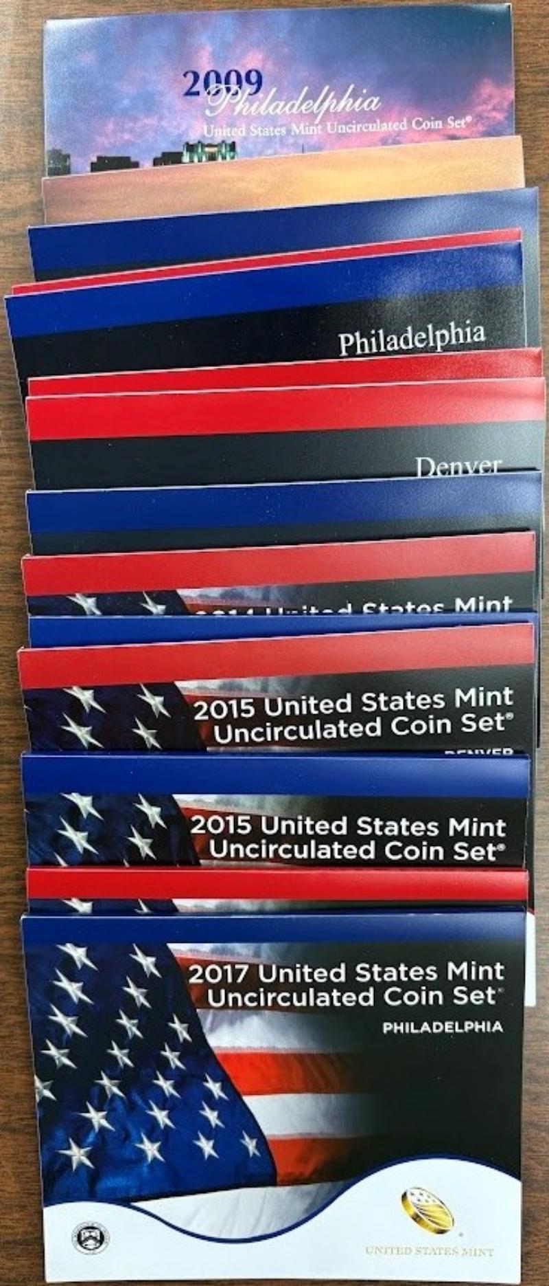 and D Mint sets incl 2009, 2011 (3), 2014, 2015 & 2017. All in OGP. (Image)