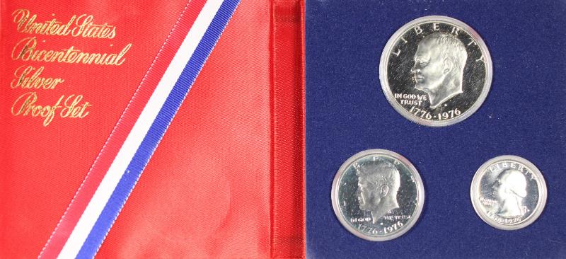 Diff in a straight run 1965 // 2008 plus the 3-pc Bicentennial silver set all in OGP. (Image)