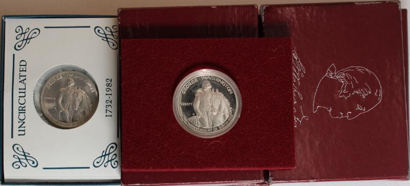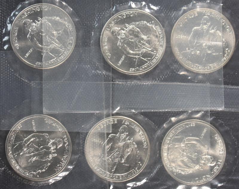 1982-S George Washington Silver Commemorative Half-Dollars Proof (5) & Uncirculated (1). All 0.9 Fine. ASW 2.17ozt. All housed in OGP (worn) with COA. (Image)