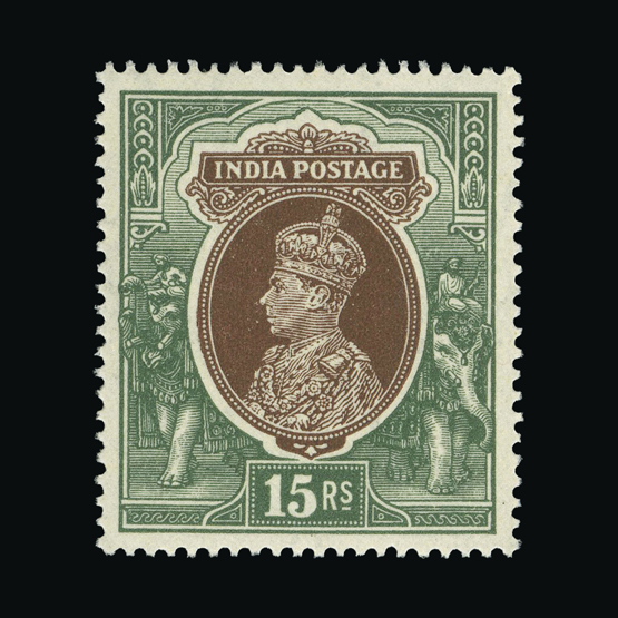 1937-40 15r brown and green, extremely fresh, very fine u.m. {UM} (Start Price / Minimum Bid) = £88.00)