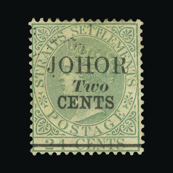 1891 2c on 24c green var. broken 'O' in 'JOHOR' very fine used {U} (Start Price / Minimum Bid) = £16.00)