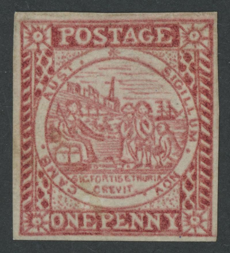 Lot 10 - 1850-51 Sydney Views 1d dull carmine Plate II (Clouds) on Hard Greyish Paper SG 11, good even margins, exceptional early impression and strong colour, unused, Cat £17,000. Ceremuga Certificate (2022) states "Very rare ... superb & fresh". One of the finest unused Penny Sydney Views in private hands. A similar example sold at our auction of 5.8.2021 for $26,250 (Sale 245 Lot 434). Both are superior in quality & appearance to the unused SG 5 & SG 8 from 'Besancon' (II) that sold for SFr13,915 & S....Estimate AU$20,000 Sold for AU$ 15,000