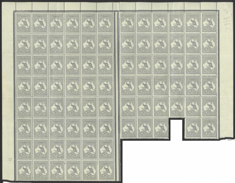 2d grey Die I SG 35 Plate 2 large-part sheet (83 of 120 units) comprising left-hand pane block of 48 (6x8) and right-hand pane