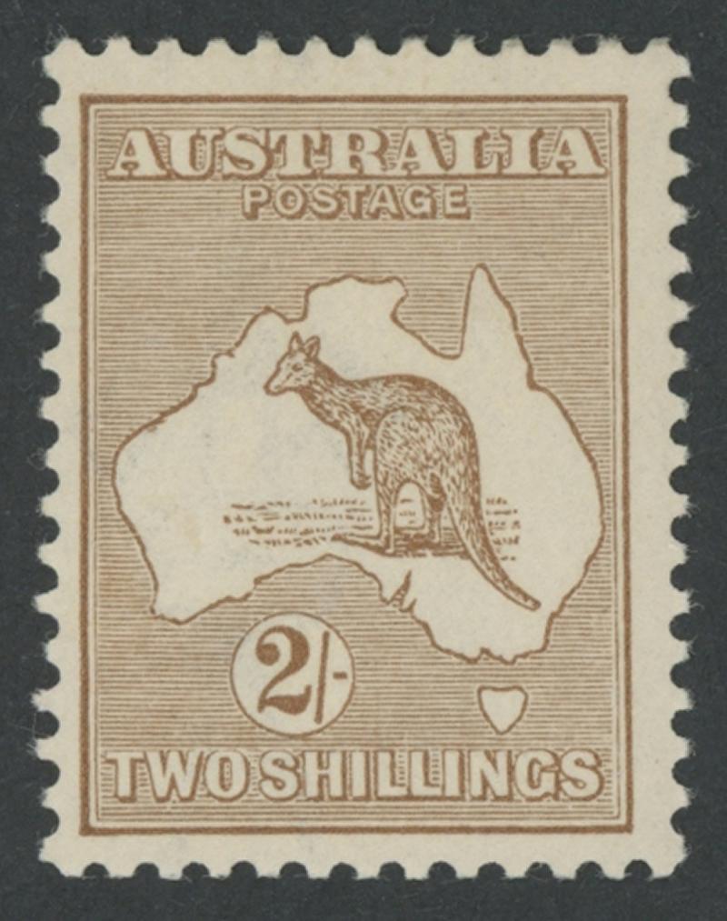 2/- light brown ACSC 36 (SG 29), well-centred for this denomination, small hinge remainder, Cat $1500 (£800). (Image1) (Image2)