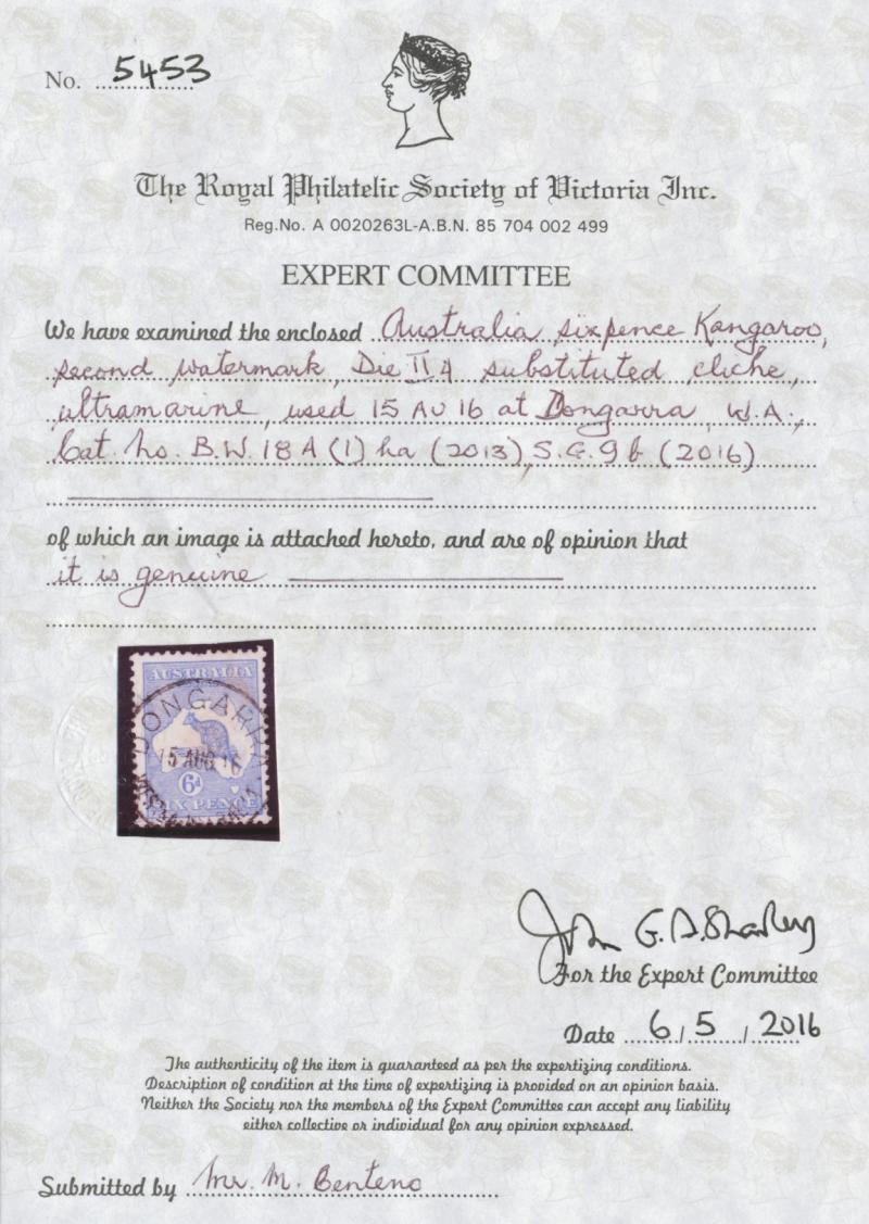 6d ultramarine Substituted Cliché Die IIA [Pos 1R60] ACSC18(1)ja (SG 26b), 'DONGARRA/ 15AUG16/WESTN AUSTRALIA' cds with the 'O'