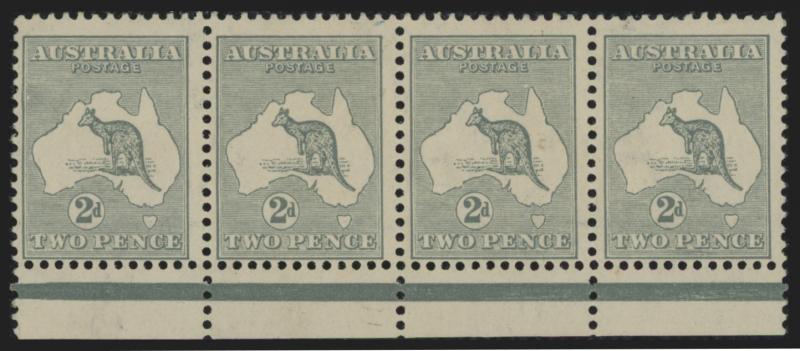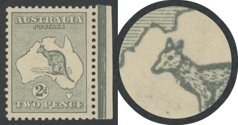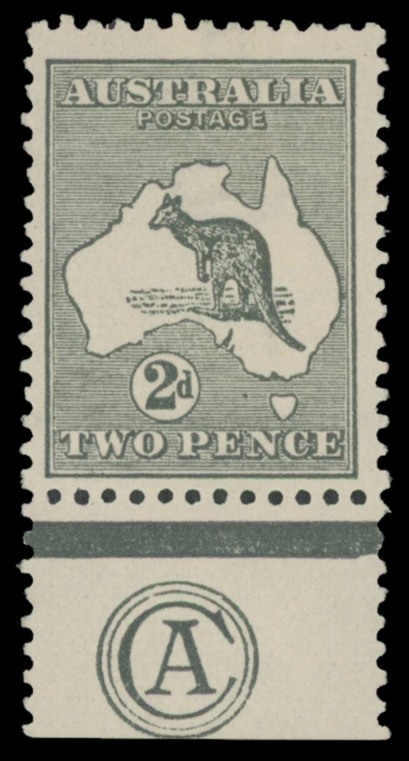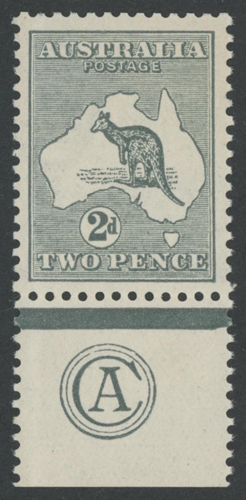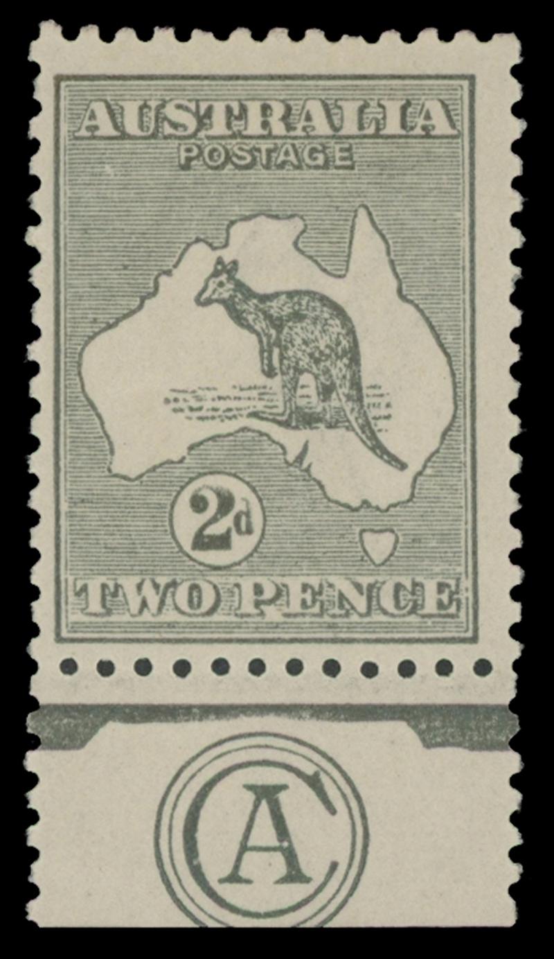 2d grey SG 24 Plate 2 'CA' Monogram single ACSC 6(2)za, well-centred, very lightly mounted, Cat $2000. (Image1) (Image2)