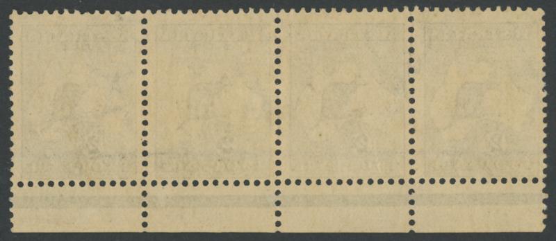 2d grey SG 24 marginal horizontal strip of 4 from the base of the sheet [Pos L55-58], the left-hand unit with Retouched Left Frame