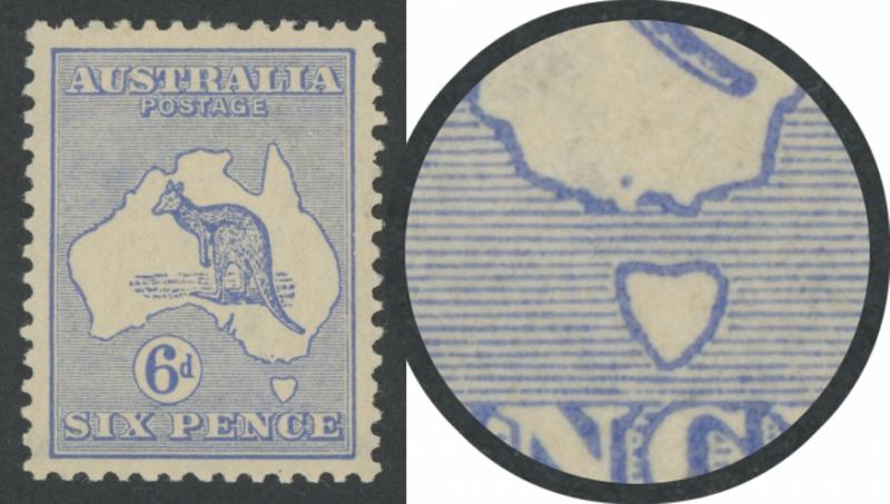 & Shading North West of Western Australia ACSC 6(1)k [Pos L55; the No Monogram position], minor bends, a trifle aged, unmounted, Cat $2400+ for the variety mounted and three unmounted singles. (Image1) (Image2)