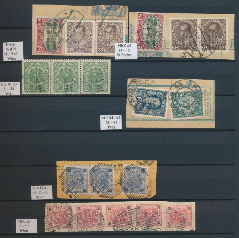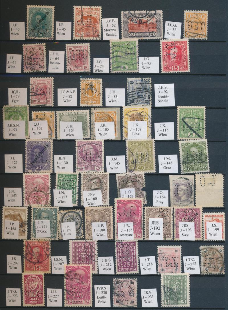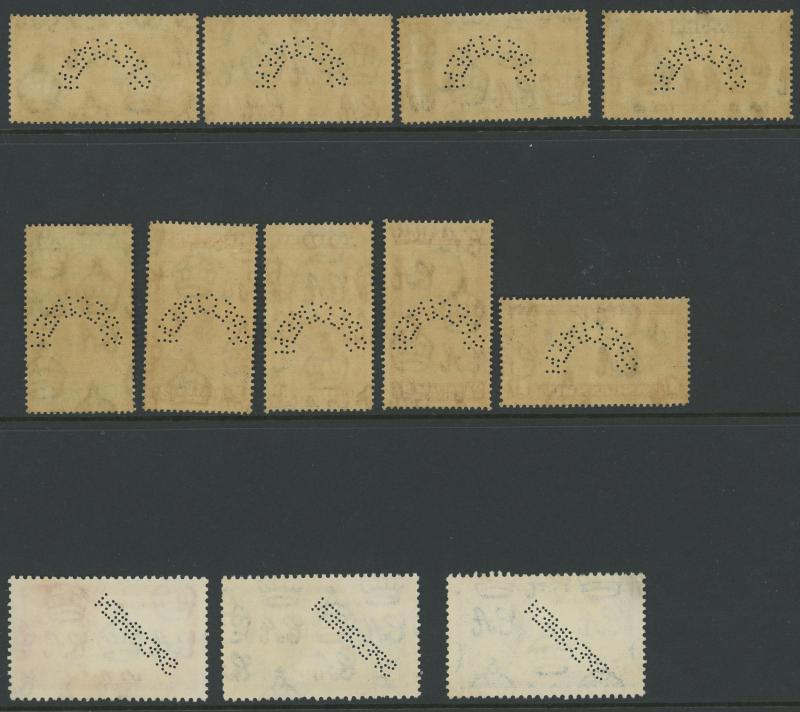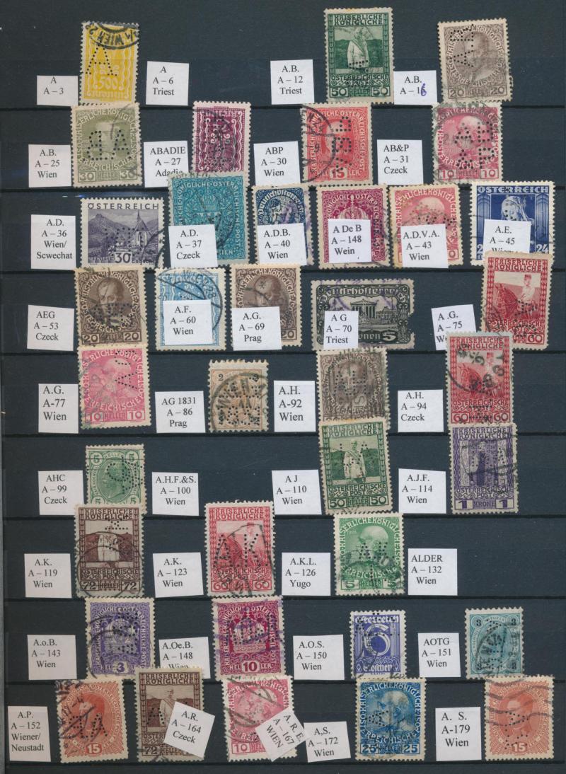 COMMERCIAL PERFINS: Collection of pre-WWII types 'A' to 'ZOZ' with many unusual patterns & a large number on non-base-rate stamps,