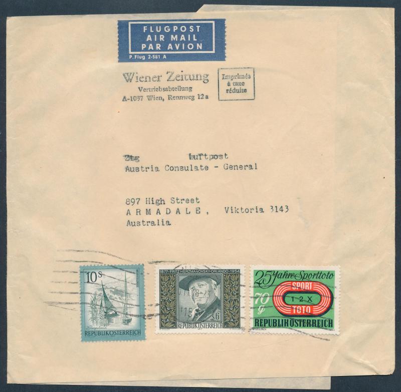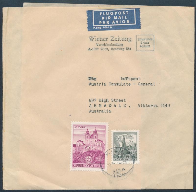 1970s-1980s Wiener Zietung wrappers x32 by air to the Austrian Consul in Melbourne with Buildings to 20s & Landscapes to 20s.
