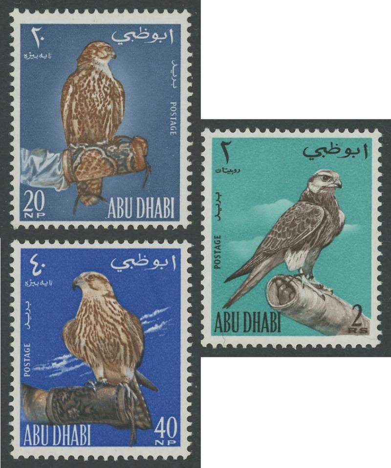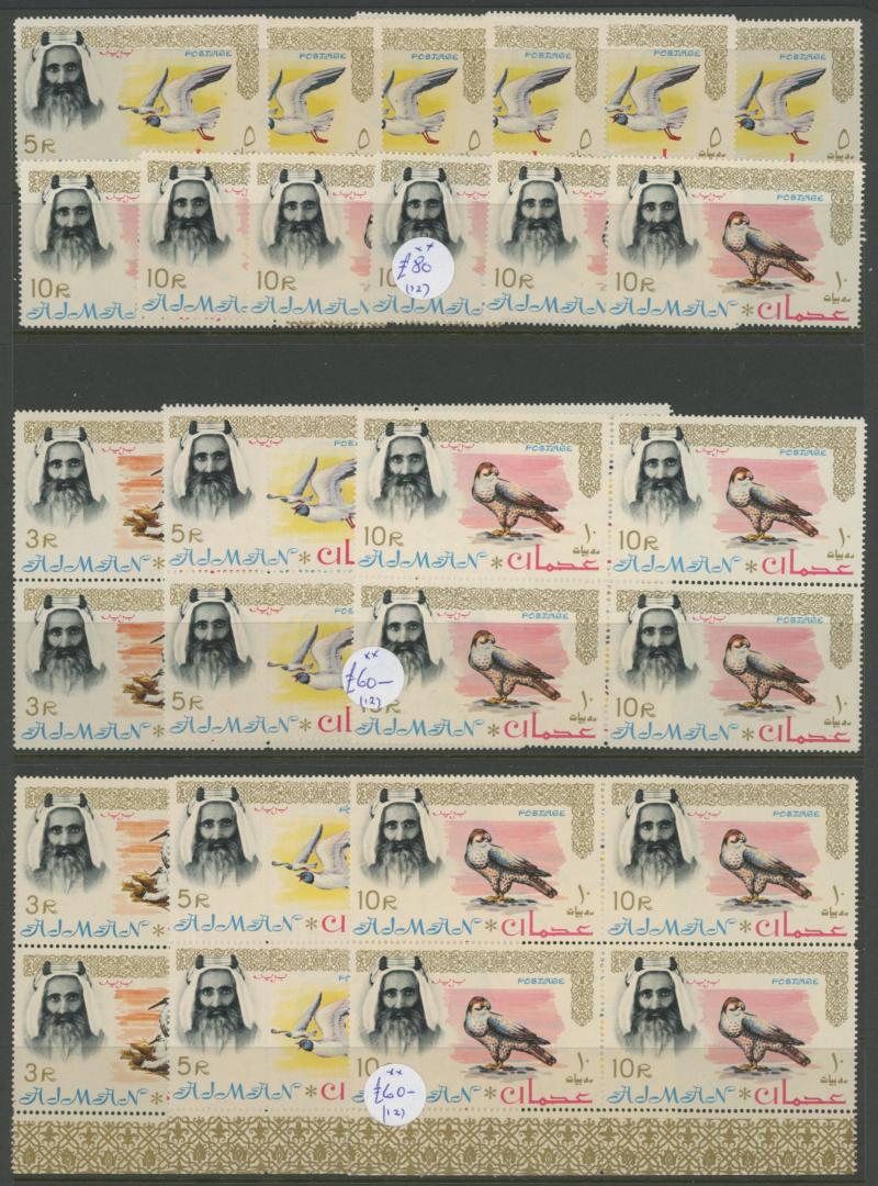 Mint range on hagners with Abu Dhabi 1964 to 10r (*), and 1965 Falconry set; then duplicated sets with Ajman 1964 Pictorials to 10r