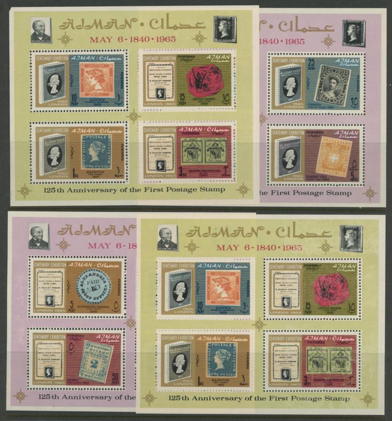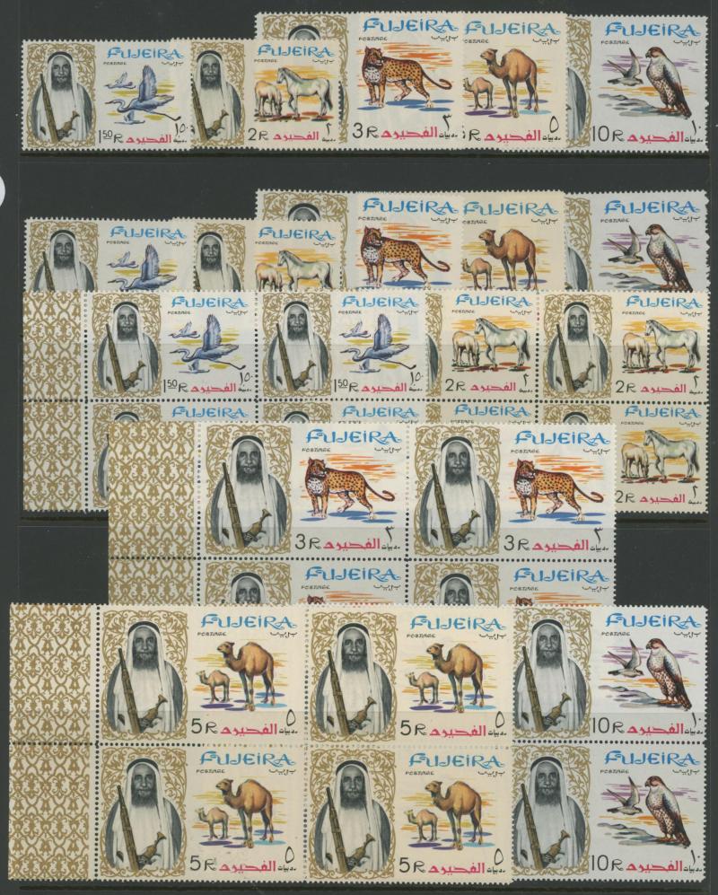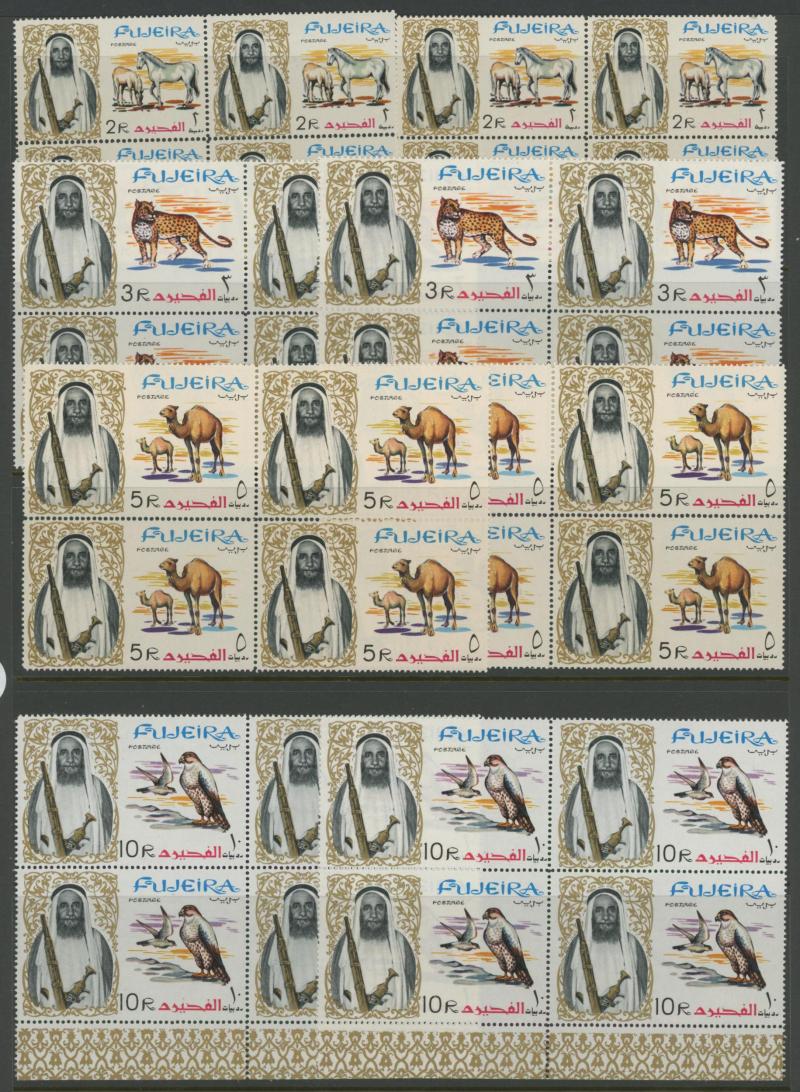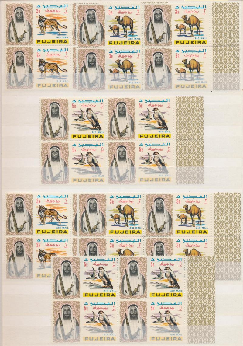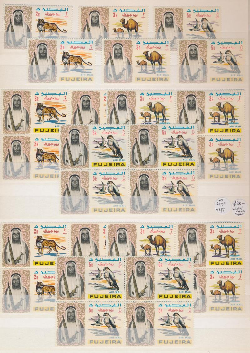 with blocks of 4, and 1965 Gibbons Centenary sets with M/Ss; Fujeira 1964 Pictorials Cream & White Papers, plus blocks of 4, 1965 Kennedy high values, Umm al Qiwain 1964 Pictorials, and Olympics with blocks of 4, 1965 Kennedy high values blocks of 4